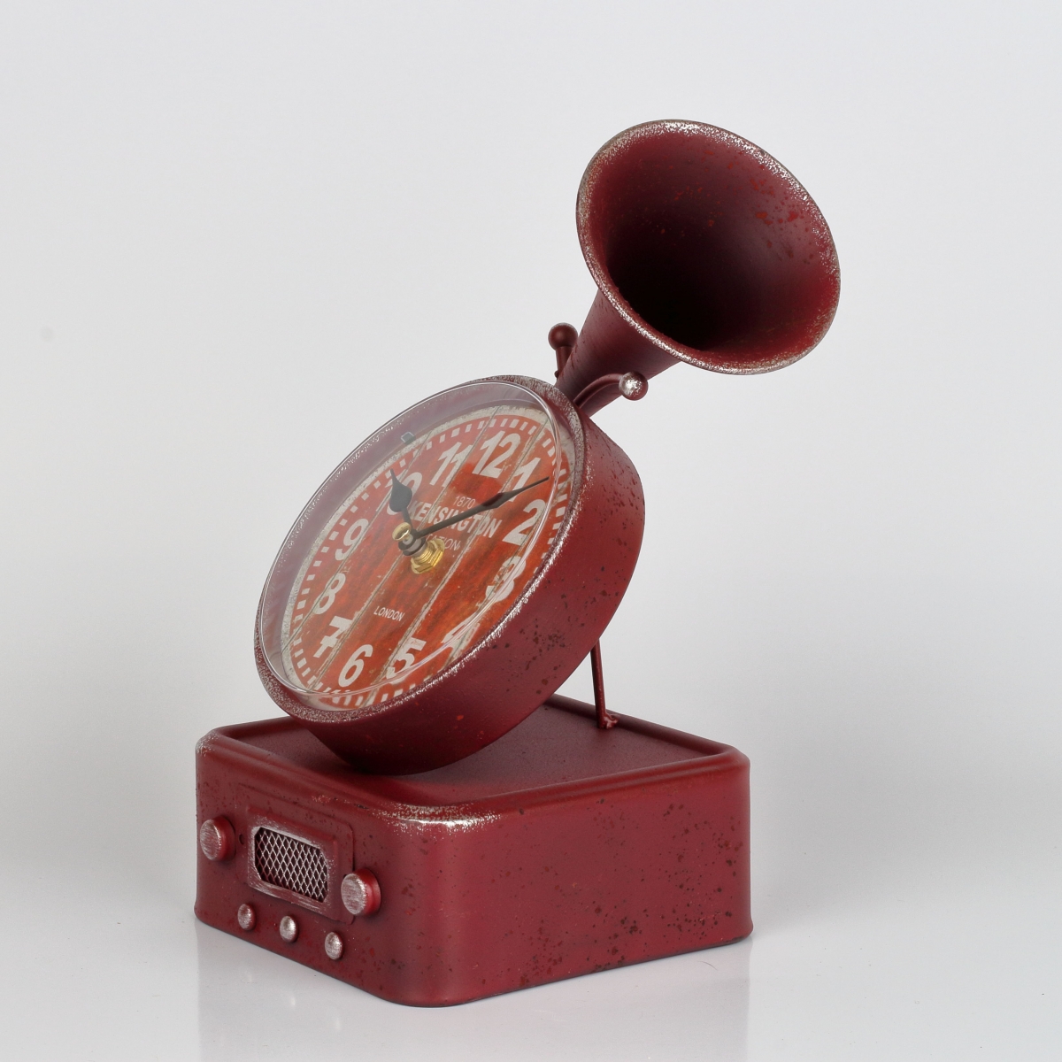Stolní hodiny gramofon červený 16x14,2x26cm v interiéru jen tak lehce nepřehlédnete! Pokud si potrpíte na stylové kousky s nápadem a milujete originalitu, při výběru stolních hodin můžete upustit uzdu své fantazii a při výběru se doslova kochat touto nádherou.