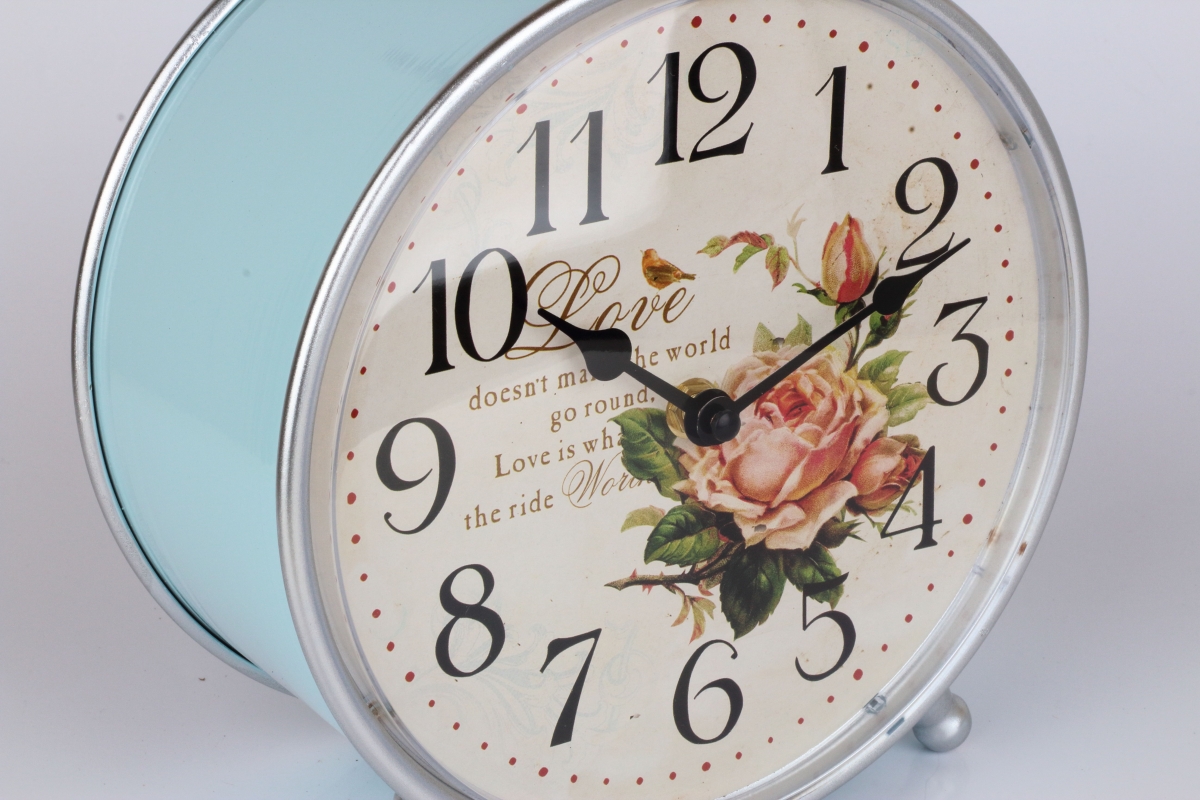 Stolní hodiny modré 22x21x11cm mají velké číslice a připomínají svým vzhledem časy našich babiček. Krásné však budou také v romanticky laděném interiéru.