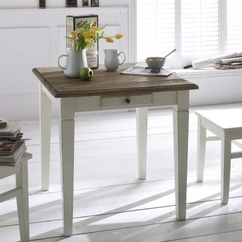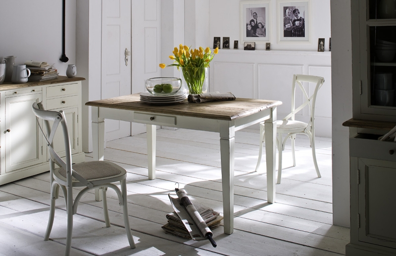 Stůl má rozměr 80 x 76 x 80 cm. Jedná se o vintage nábytek, u nějž je dominující bílá barva, dřevo a kvalitní zpracování.