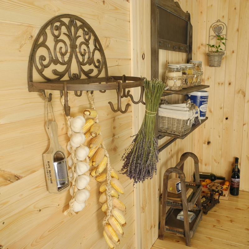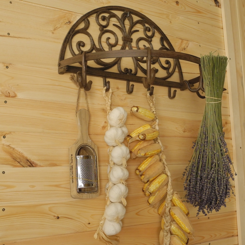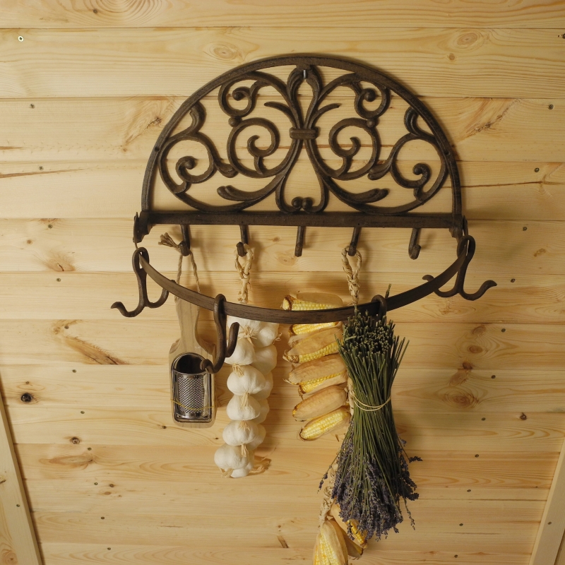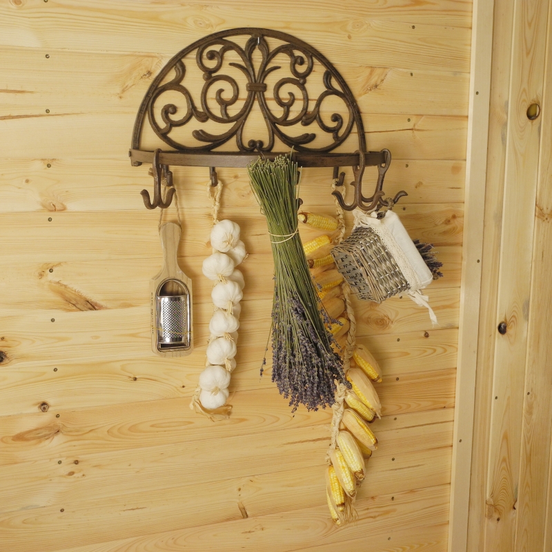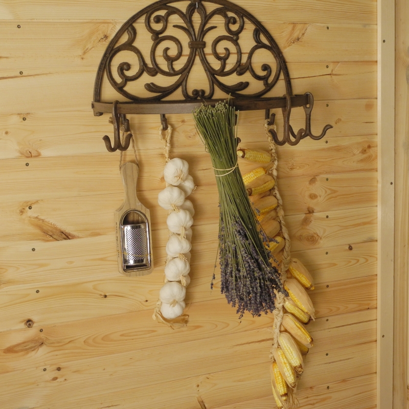 Sušák na bylinky má rozměr 46 cm šířka, 30 cm výška a hloubka je 26 cm od zdi. Neobvyklý retro výrobek najde své uplatnění v každé domácnosti, nemusí totiž sloužit pouze k sušení bylinek, naopak zaujme i díky své zdobné funkci. Je opatřen několika háčky a také třemi pohyblivými dvojháčky. Sušák je vyroben z kvalitní litiny.