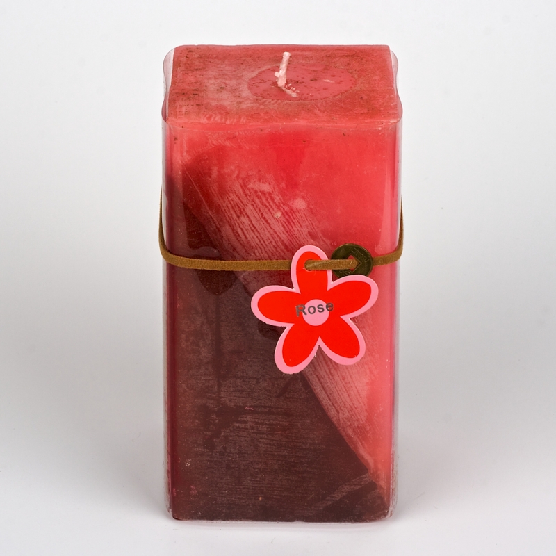 Svíce hranatá vysoká ROSE 8x8x15cm. Velice pěkná svíce o rozměrech 8x8x15cm, která příjemně dokrášlí Váš interier, či udělá radost Vašim blízkým, jako vhodný a vkusný dárek.