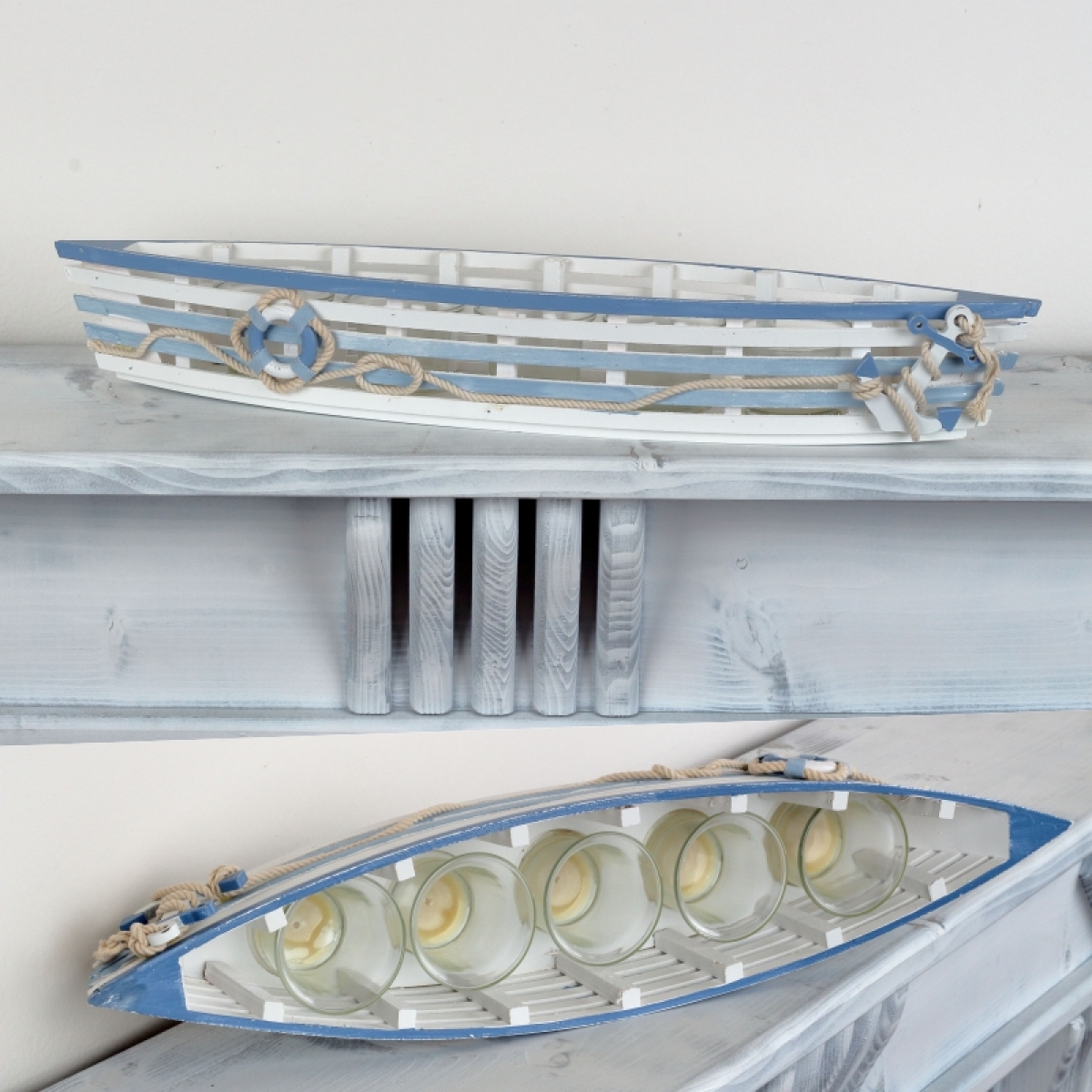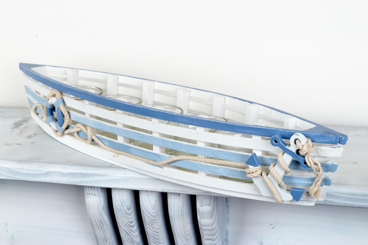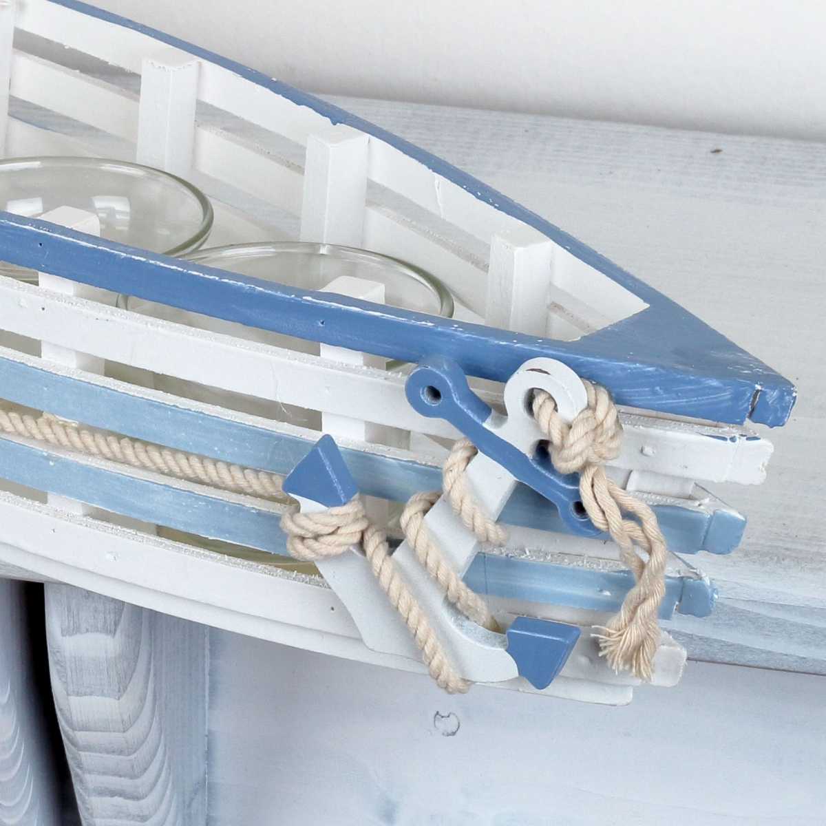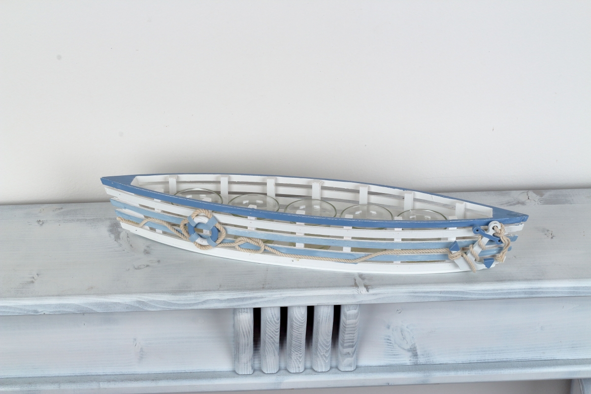 Svícen ve tvaru loďky 52x10x8cm na tři čajové svíčky.