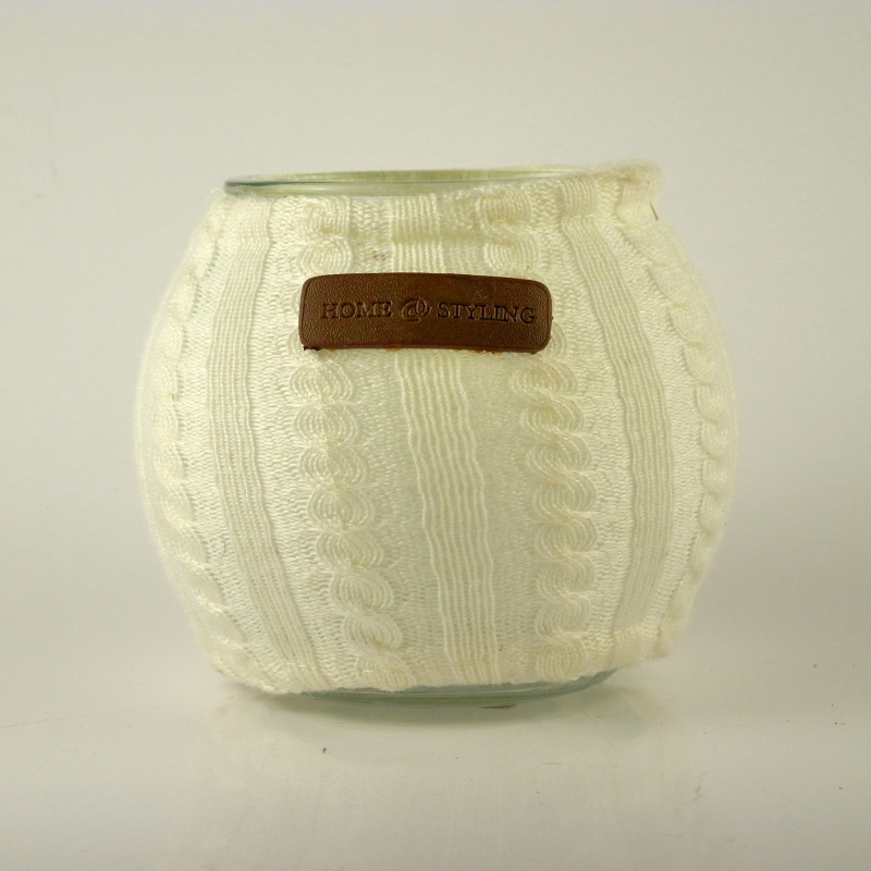 Pletený, vlněný návlek na kalíšek, lze čistit jako běžné textílie a pletené materiály. Na návleku je designová kožená značka HOME STYLING.