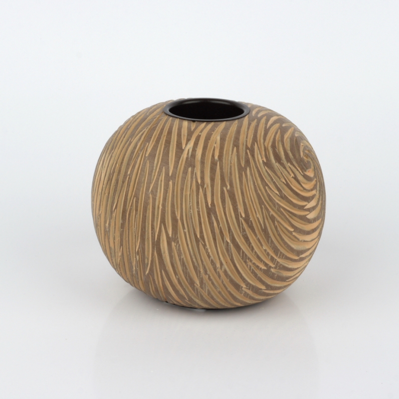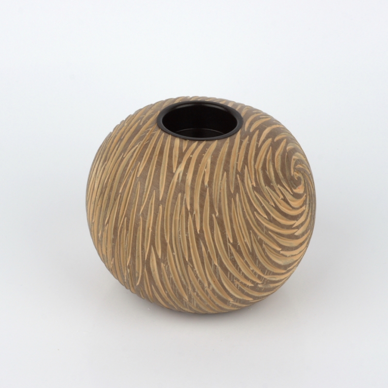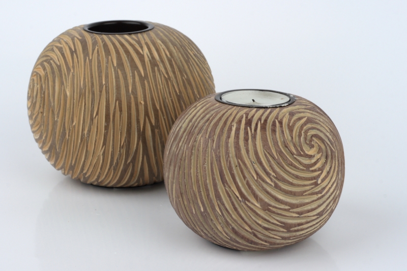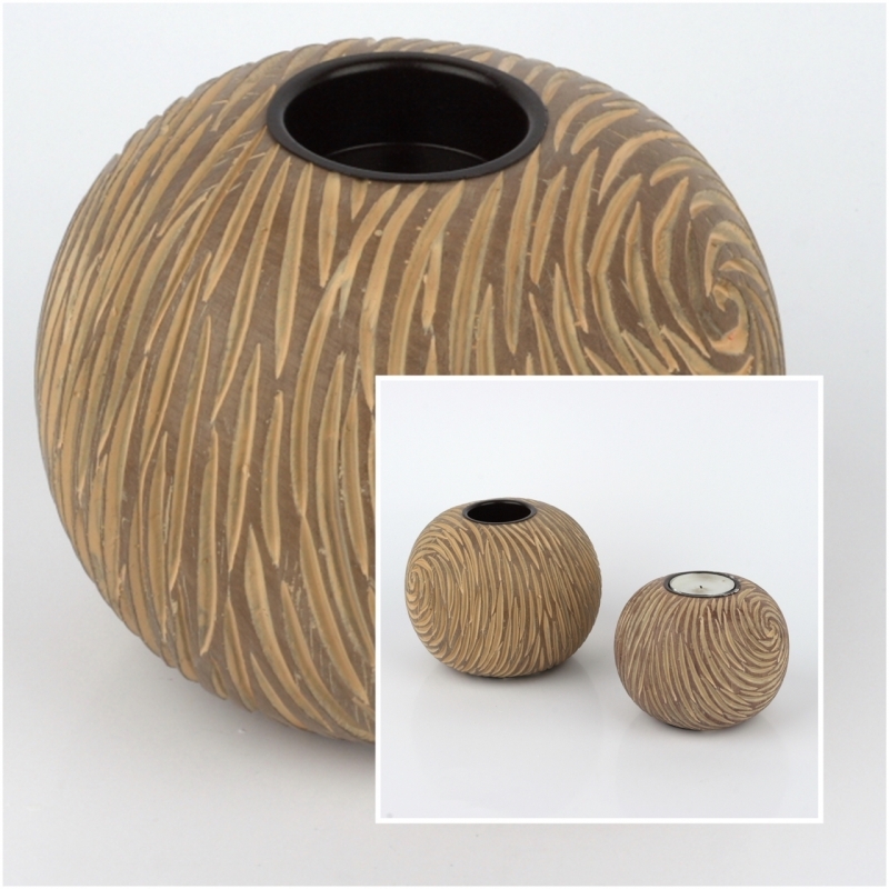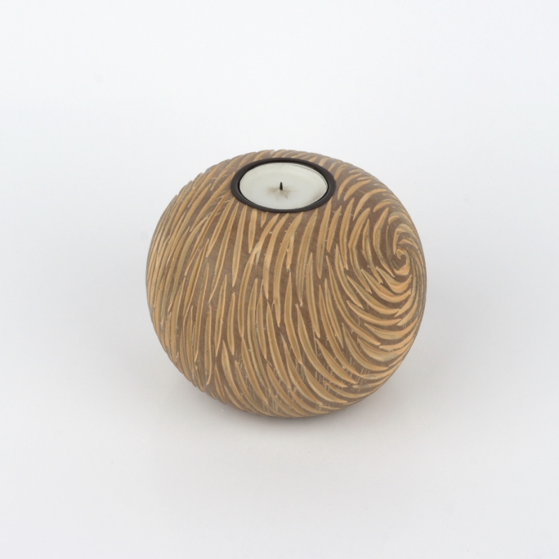 Svícen ve tvaru koule je ja jednu čajovou svíčku a má překrásný vzhled připomínající rytí do dřeva.
