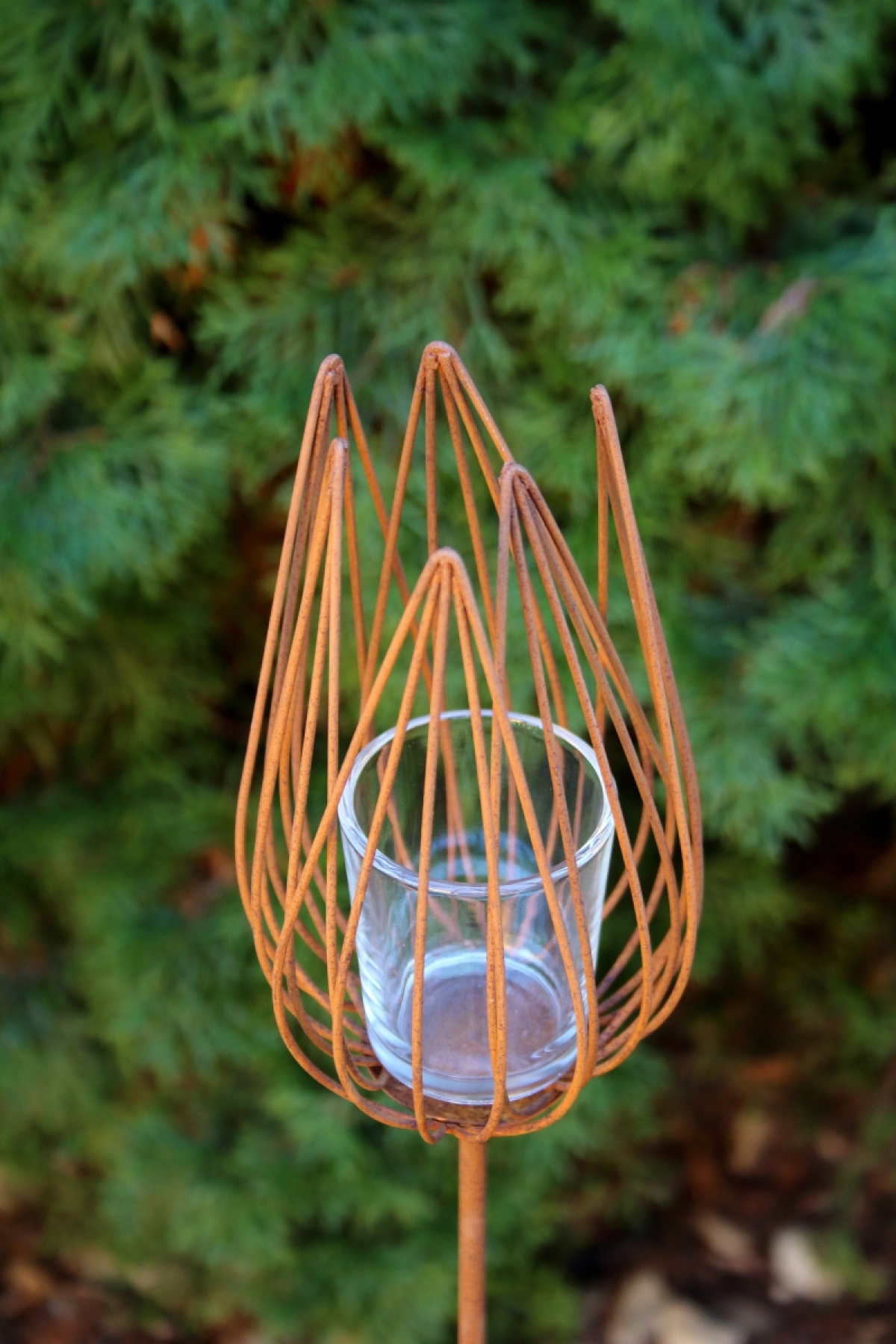Materiál: kov, skleněný kalíšek na čajovou svíčku