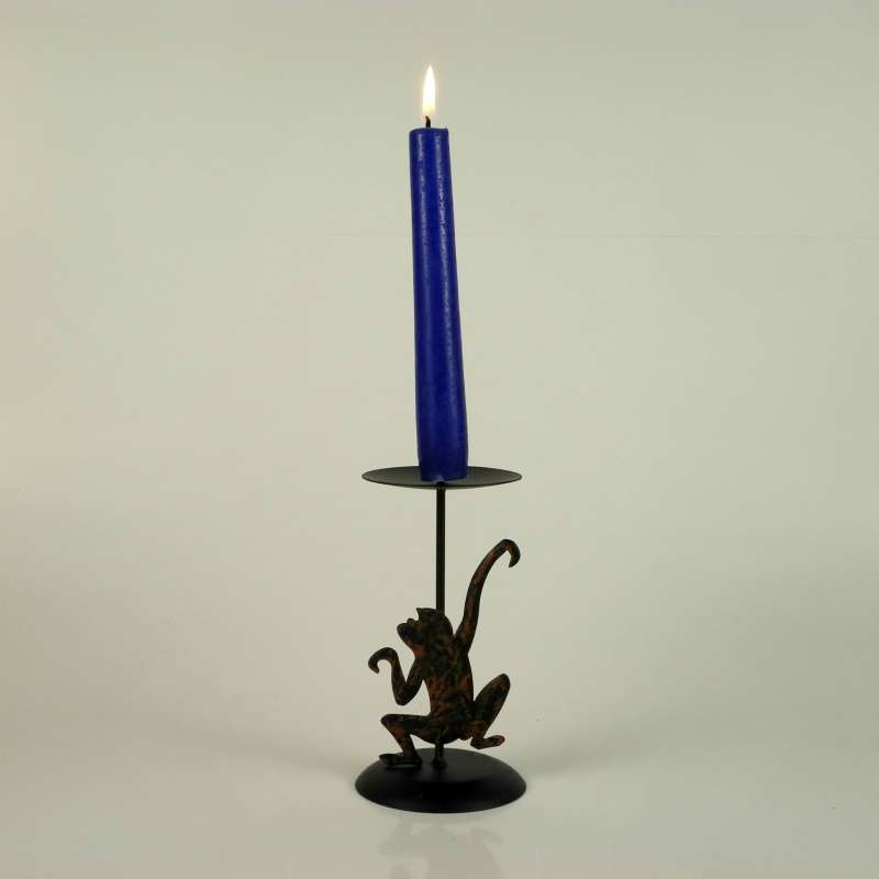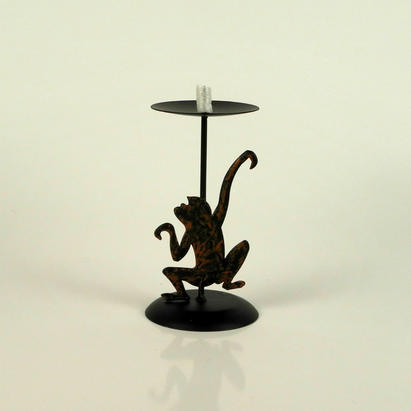 Kovový svícen o výšce 16cm a průměru 8cm, s různými zvířecími motivy.