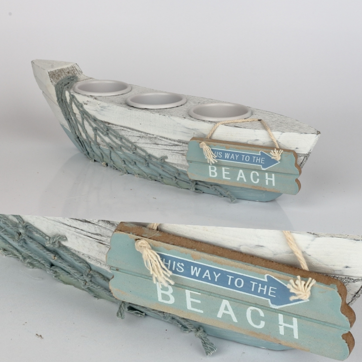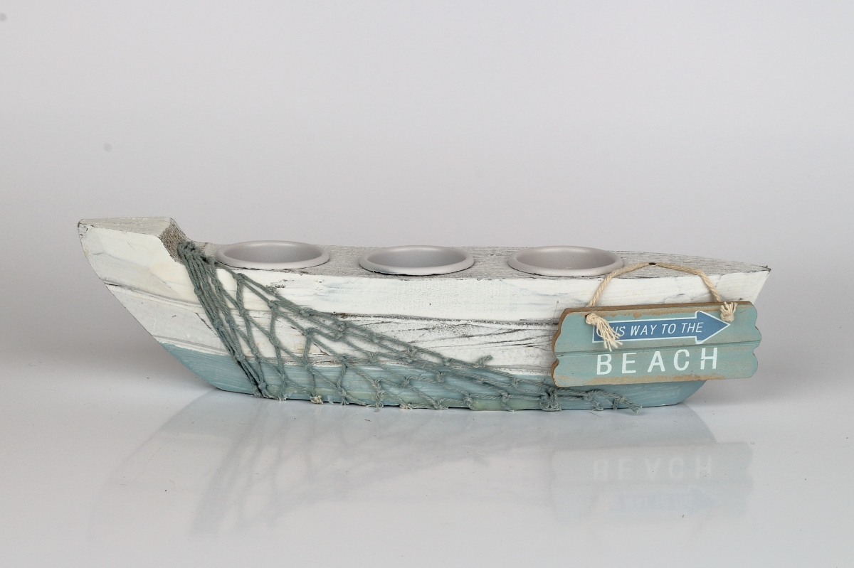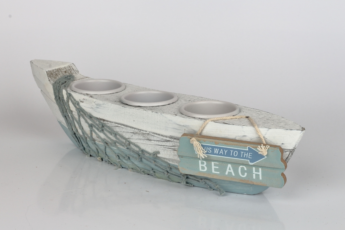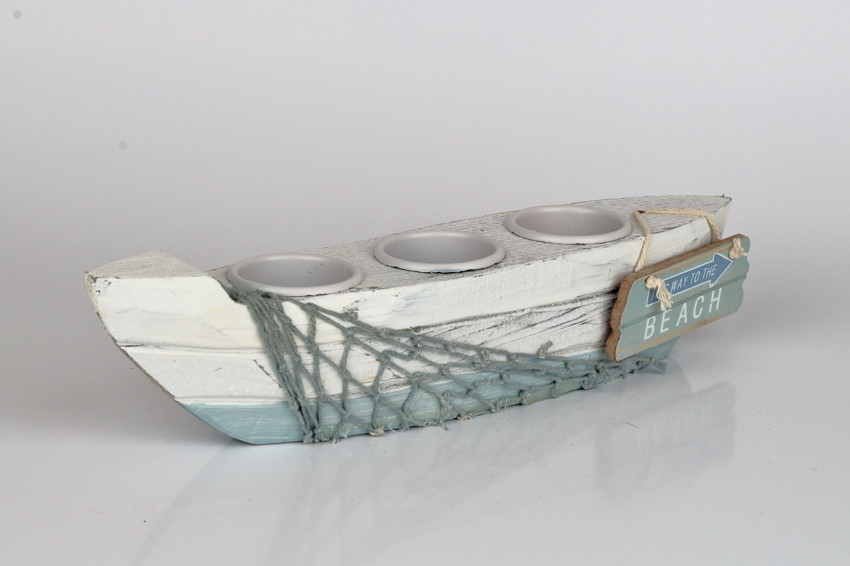 Svícen ve tvaru loďky 30x7x8cm na tři čajové svíčky.