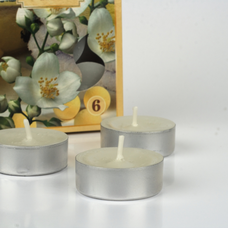 Svíčka čajová vonná jasmín sada 6ks. Vhodná dekorace, která příjemně osvěží interier i před samotným zapálením. Příjemná vůně jasmínu ..