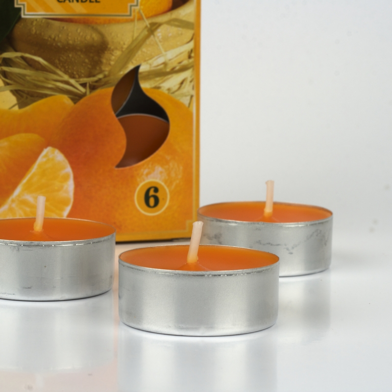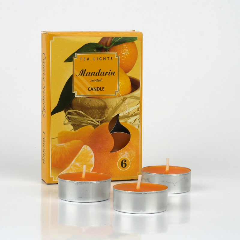 Svíčka čajová vonná mandarinka sada 6ks. Vhodná dekorace, která příjemně osvěží interier i před samotným zapálením. Příjemná typická vůně mandarinky ..