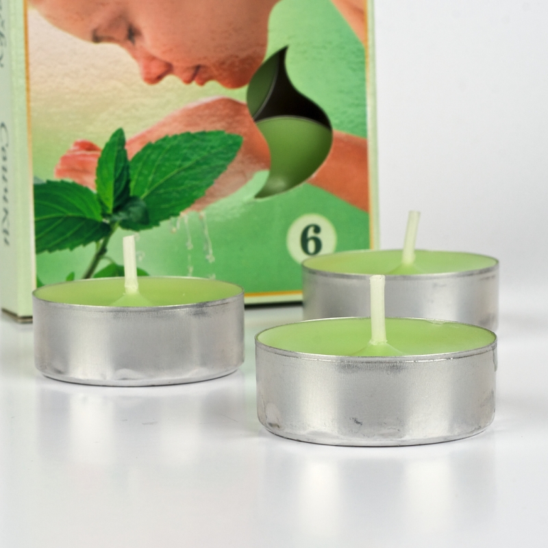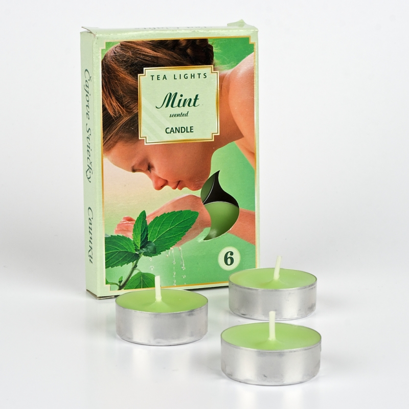 Svíčka čajová vonná máta sada 6ti kusů vonných svíček. Vhodná dekorace, která příjemně osvěží interier i před samotným zapálením. Příjemná vůně máty ..