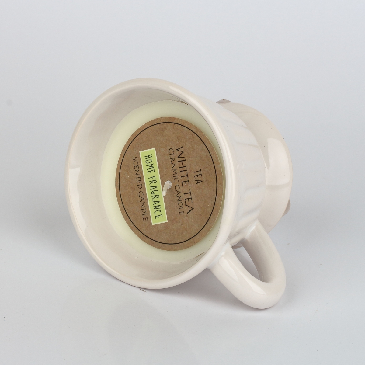 Svíčka v bílém hrníčku 9x8x6cm s vůní bílého čaje bude milým dárkem pro Vaše blízké.
