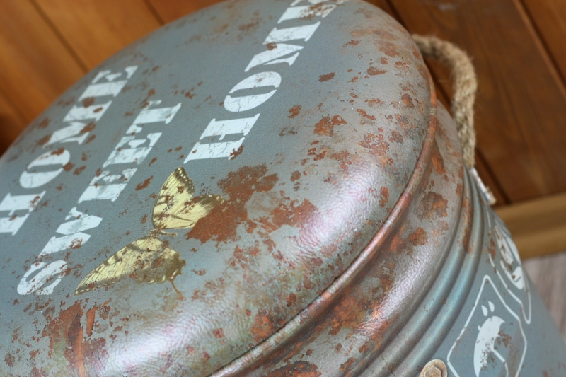 Plechový "barel" v petrolejové barvě s výrazným oprýskaným vzhledem a opotřebením působí jako opravdu historický kousek. Pohodlí je zajištěno vypolstrovaným sedákem potaženým koženkou. Taburet může být u sedací soupravy, ale také třeba v prostoru zádveří pro pohodlné nazouvání bot. Díky tomu, že se dá víko jednoduše odklopit, získáte tak i dostatek úložného prostoru na vše potřebné (rukavice, čepice, šály).