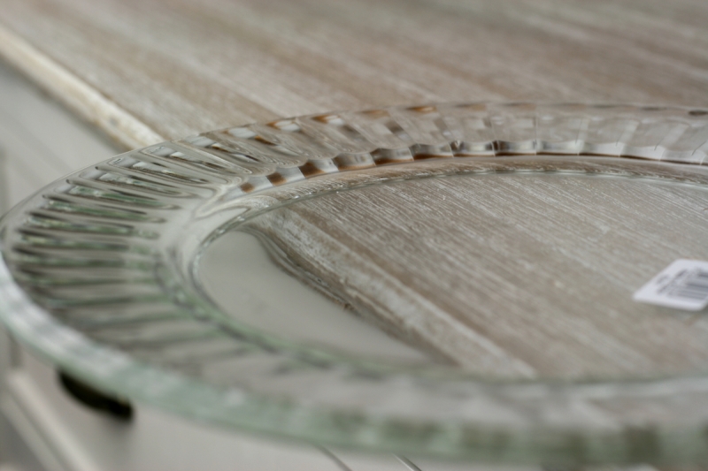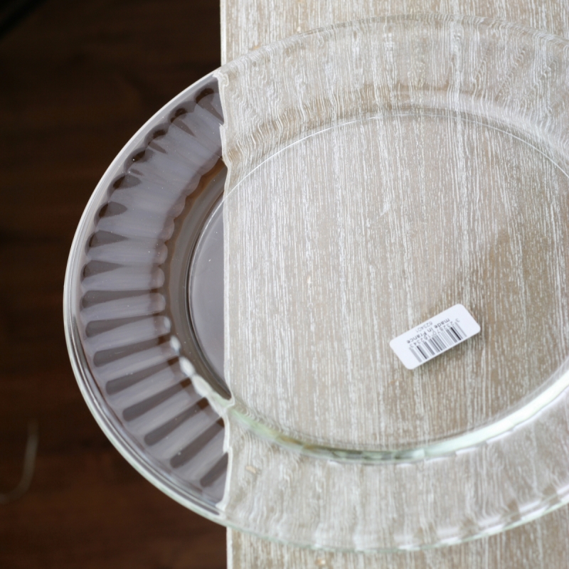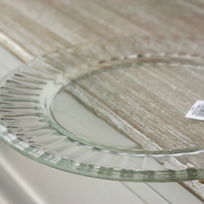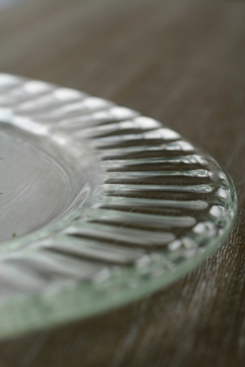 Talíř z lisovaného skla zdobený plochým žebrováním na okraji talíře. Kolekce La Rochere má typický francouzský šarm.
