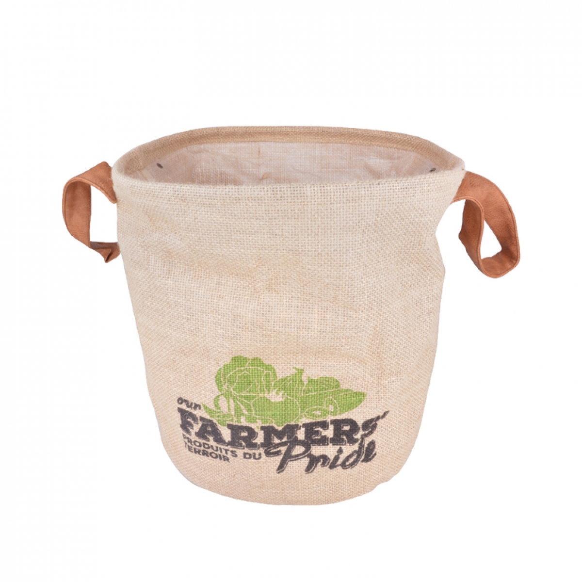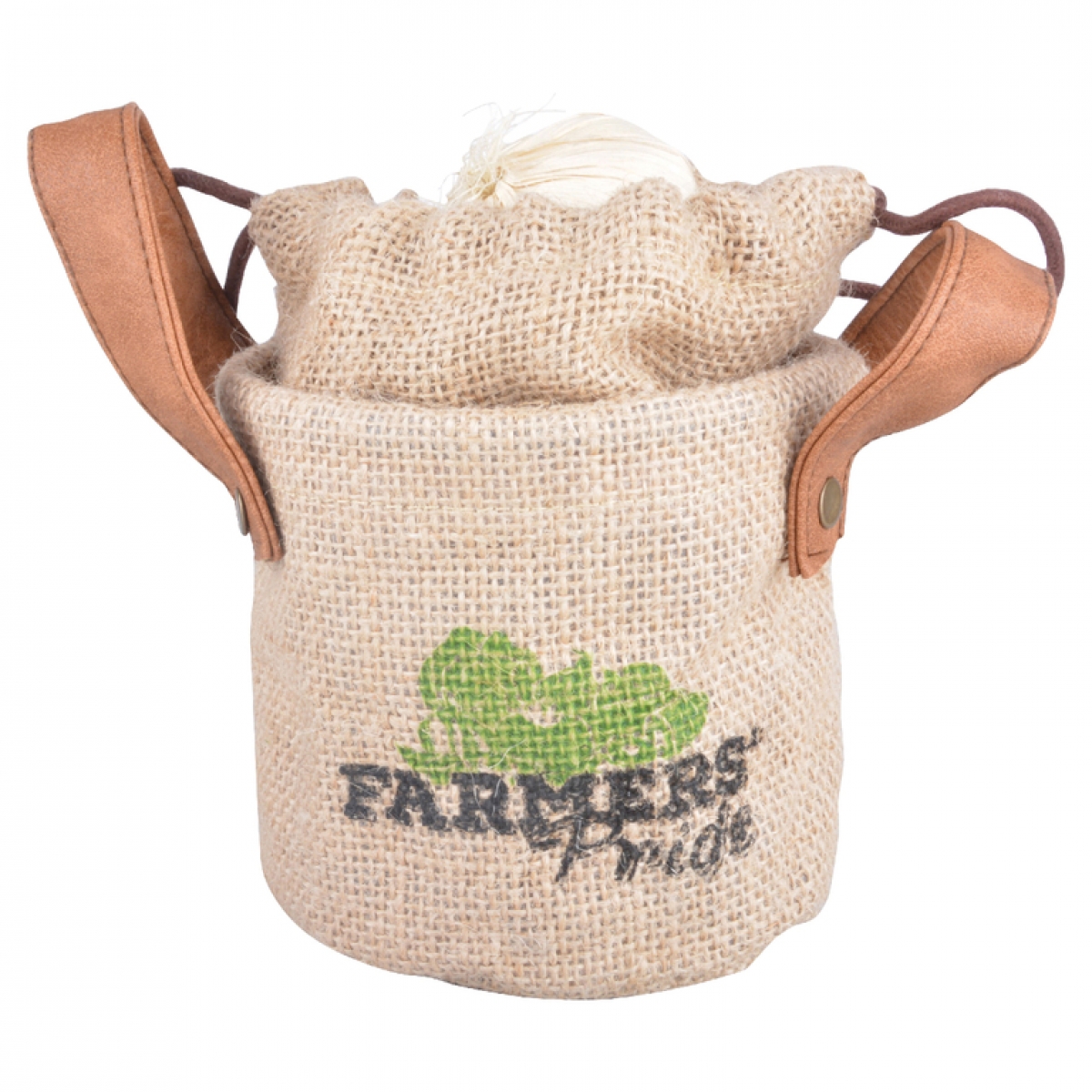 Taška je opatřená dvěmi postranními úchopy a stahovací kapsou. Taška se dodává přírodním designu s barevným potiskem motivu zeleniny a nápisu FARMERS Pride.