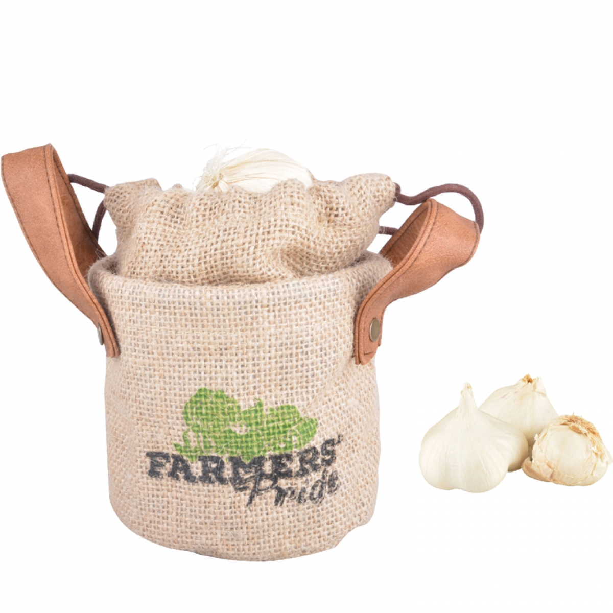 Taška z juty vhodná na skladování česneku.