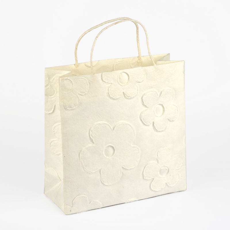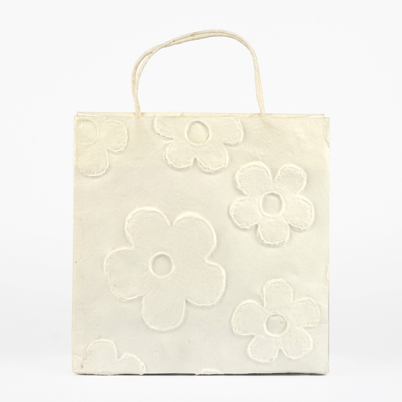 Papírová taška kytka bílá 20x20cm je vhodná jako obal pro dárek, který věnujete třeba k narozeninám.