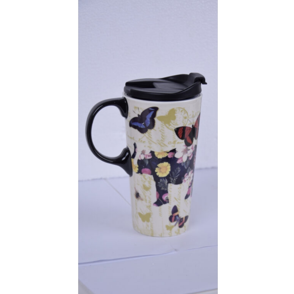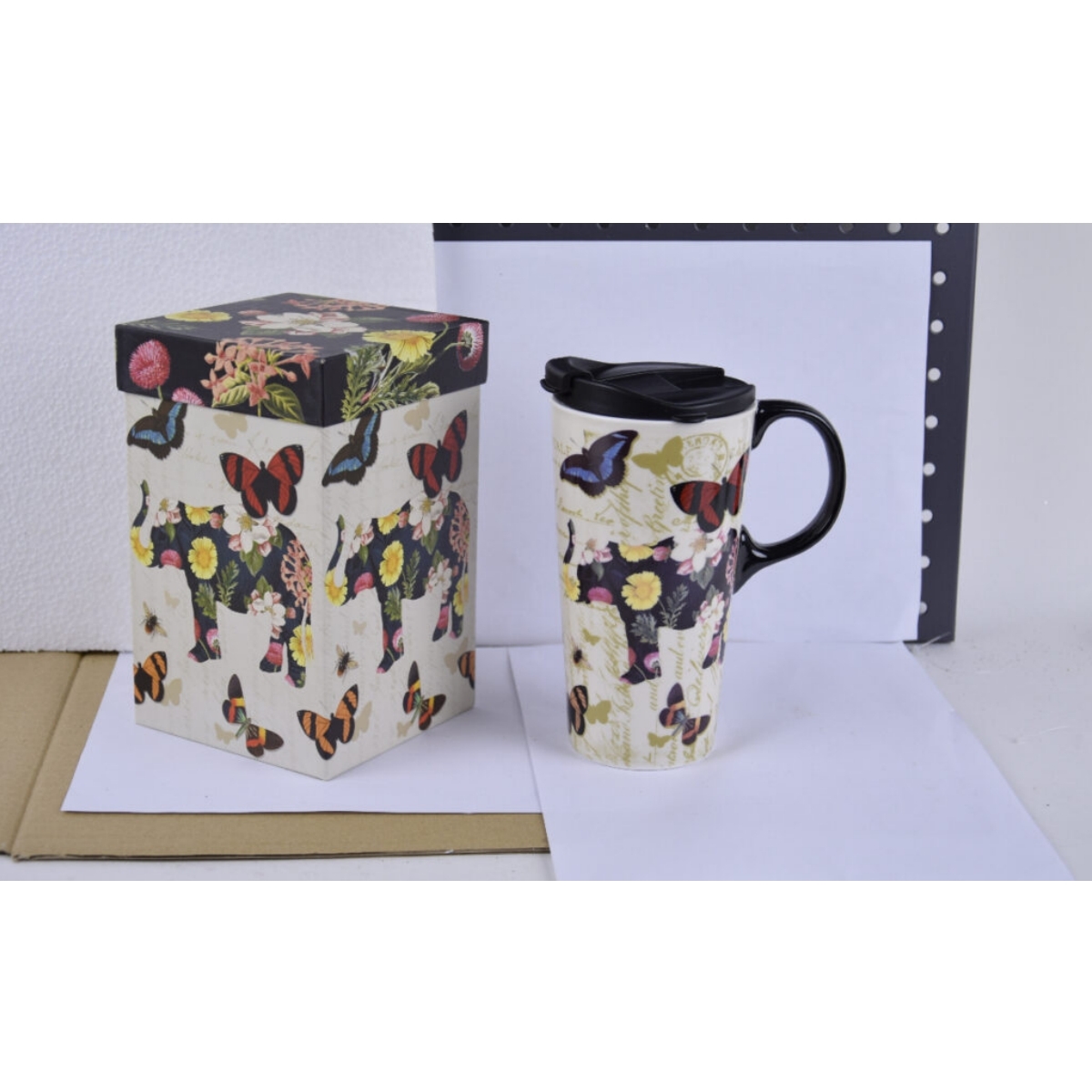 Termohrnek na kávu je opravdovým skvostem mezi všemi termohrnky z naší nabídky. Při pohledu na jeho pestrobarevný potisk s motýlky a slonem vám srdce zajásá.