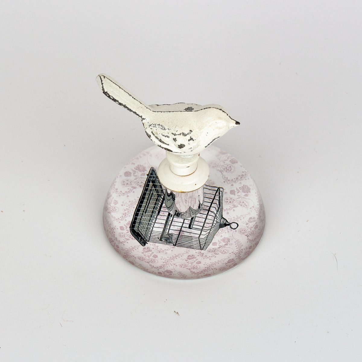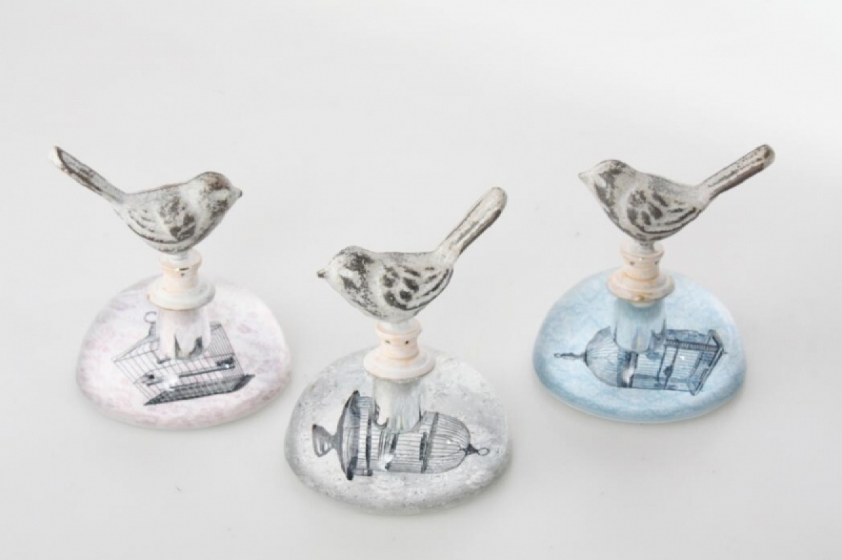 Těžítko s ptáčkem růžové 8x10x10cm se hodí na pracovním stole na dokumenty, ale i na tom jídelním třeba na ubrousky.