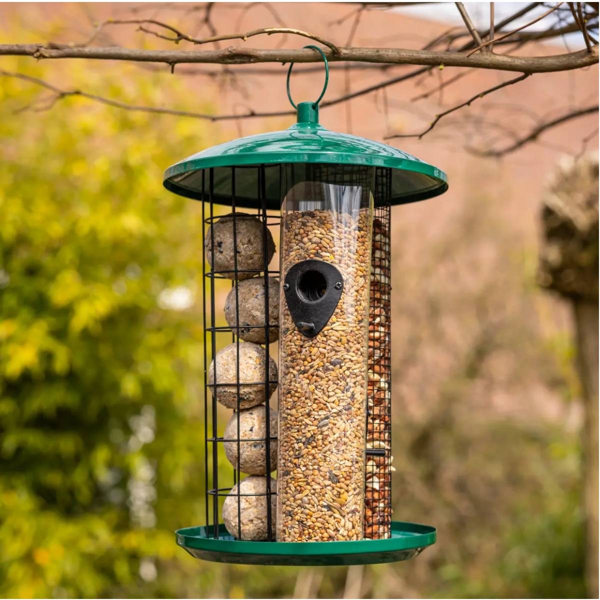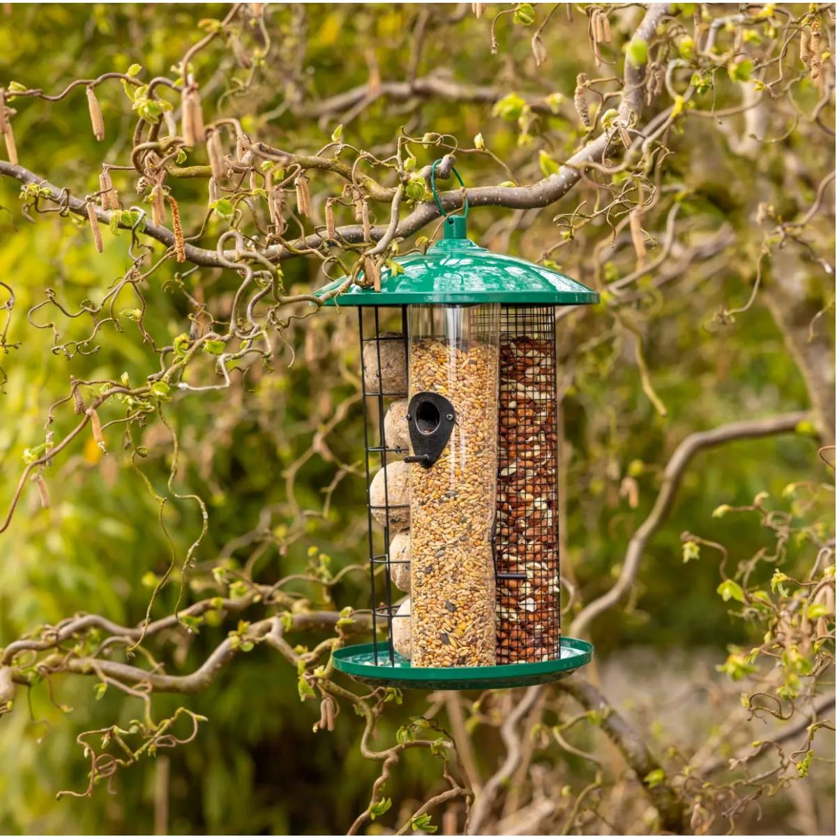 Trio krmné silo XXL je přesně ten typ doplňku, který vám během pár dnů změní atmosféru venku. Ráno otevřete okno – a místo prázdné zahrady slyšíte jemné šustění křídel. Někdo vybírá slunečnici, jiný zkouší oříšky a ti nejodvážnější si přijdou pro lojovou kouli. Každý má své místo – a vy máte klid, že je postaráno. Díky misce pod zásobníky zůstává krmení kultivované: co spadne, nezmizí hned v trávě. A protože je krmítko navržené pro snadný přístup, ptáci nepostávají dlouho – přiletí, vezmou si a zase jsou pryč. Přirozeně. Nenápadně. Hezky. Klady & přirozené vlastnosti