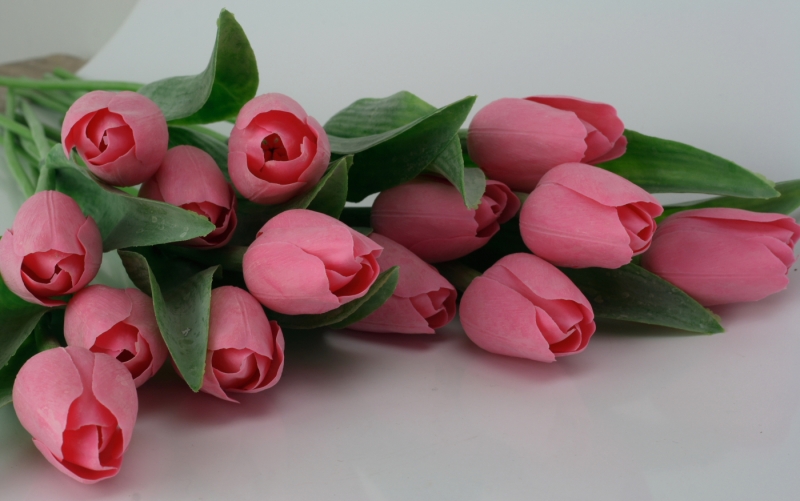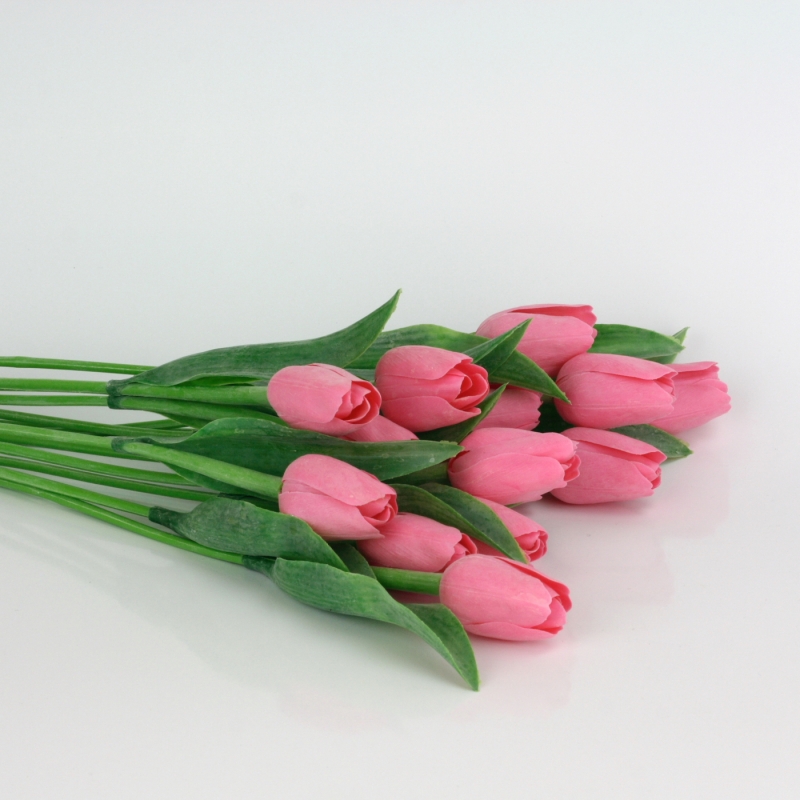 Tulipán růžový o délce 40 cm má světle růžovou barvu, ze stonku „vyrůstají“ dva listy. Od rostlých tulipánů jsou téměř k nerozeznání. Slušet jim to bude i v různých barevných kombinacích, které vám rádi na vaše přání připravíme.
