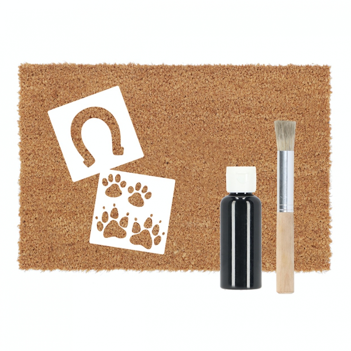 Balení: dárkové balení obsahuje rohožku, šablony s motivy zvířecích tlapek a otisků v přírodě, štětec a barva.