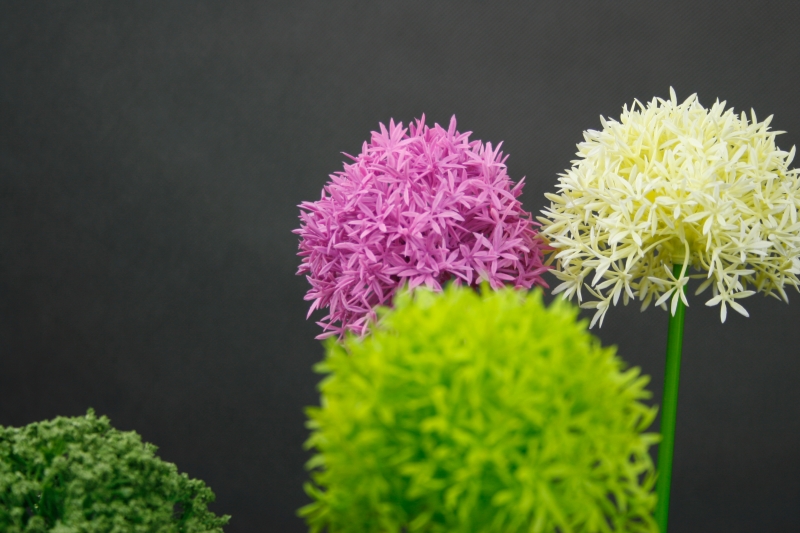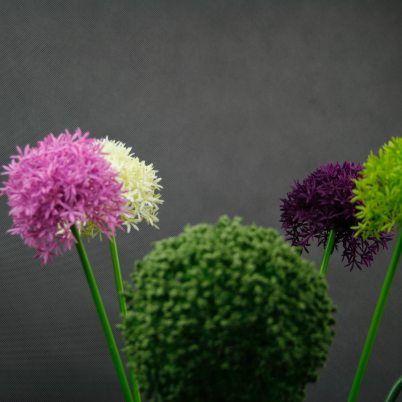 Květina je k nerozeznání od živé rostliny. Můžete si vybrat z několika barevných kombinací. Výběr barev závisí jen a jen na Vás. Okrasné česneky vypadají velmi efektně v kombinaci více barev současně např. zelená-bílá-fialová.