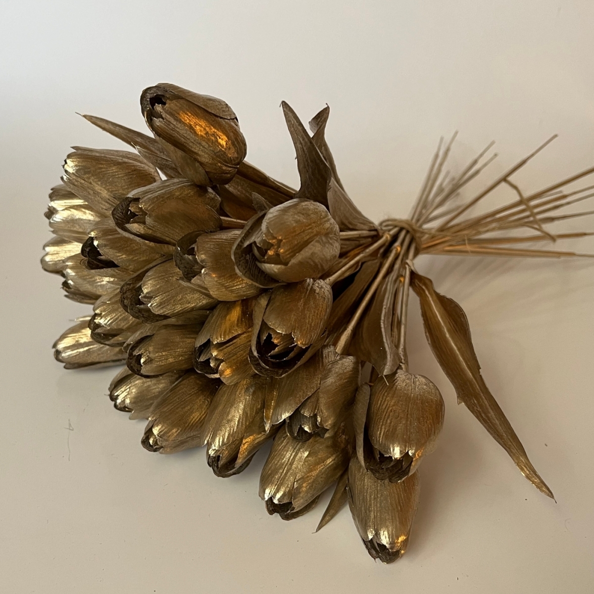 Umělé tulipány jsou jako živé, avšak nepůsobí problémy s alergiemi na pyl živých květin. Tento konkrétní je však vyroben ke svátečním příložitostem. I proto nese název Champagne.