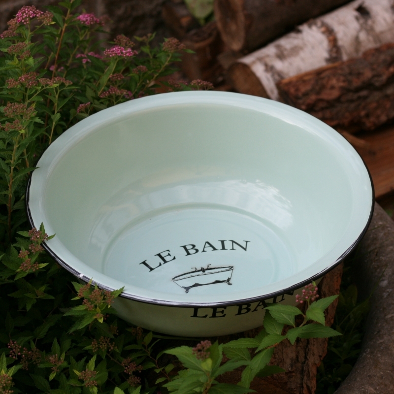 Umyvadlo je vhodné umístit na malý stolek nebo komodu a vytvořit tak mycí kout. Ať už doma, nebo na zahradě. Smaltované umyvadlo patří do nové kolekce, která kromě umyvadla obsahuje konvičku, kyblík, podnos, nočník, mýdlenku a misky.