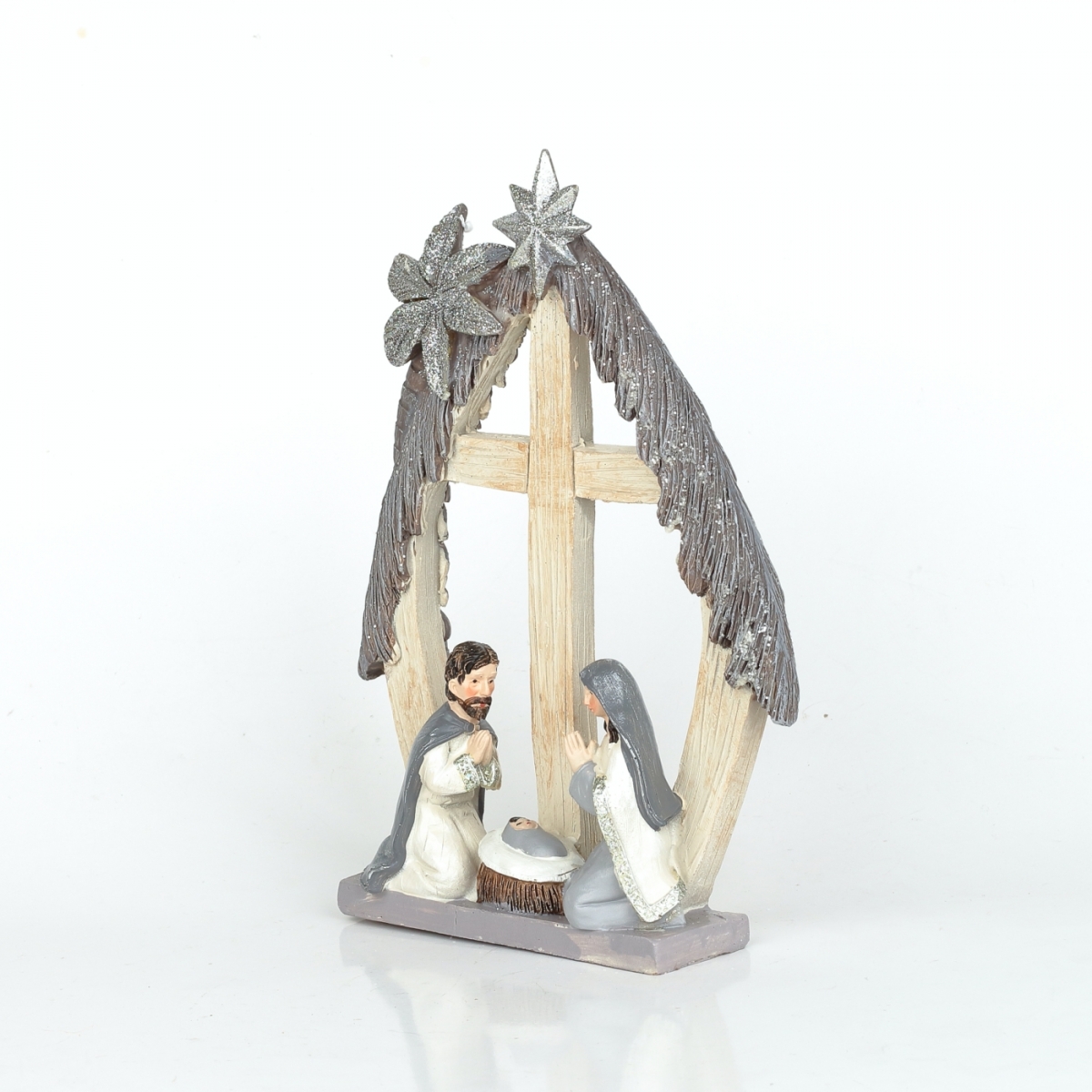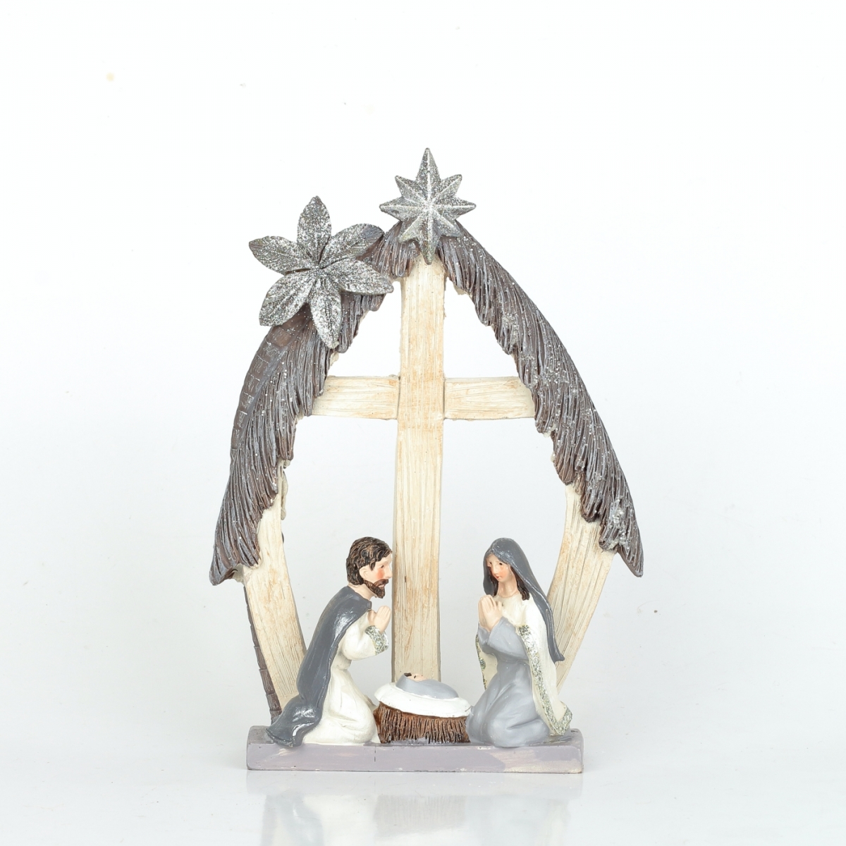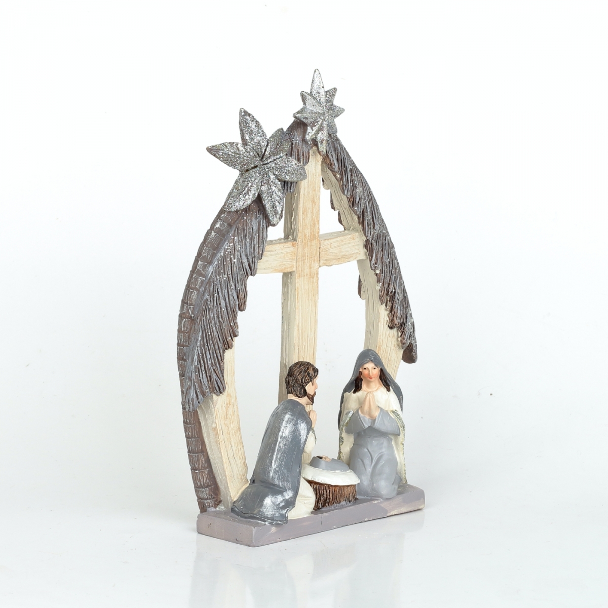 Vánoční betlém s křížem, kulatý, 15x21x5cm