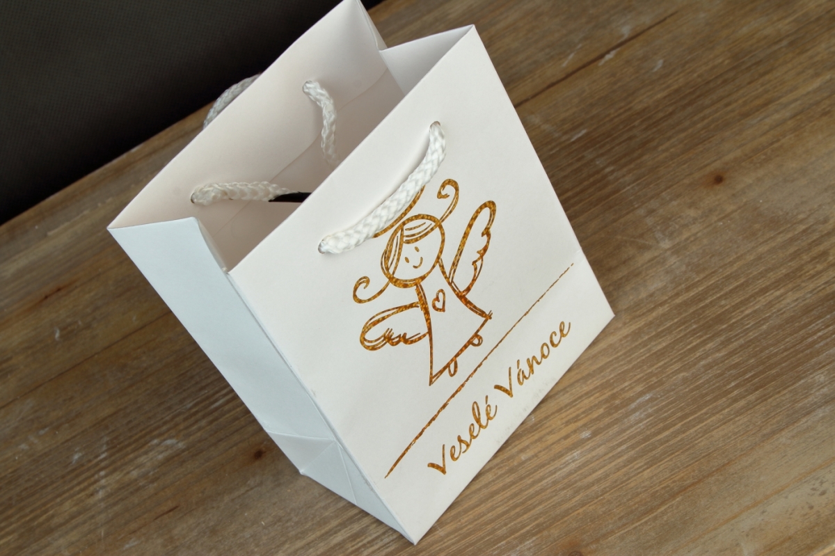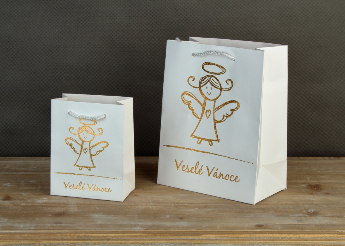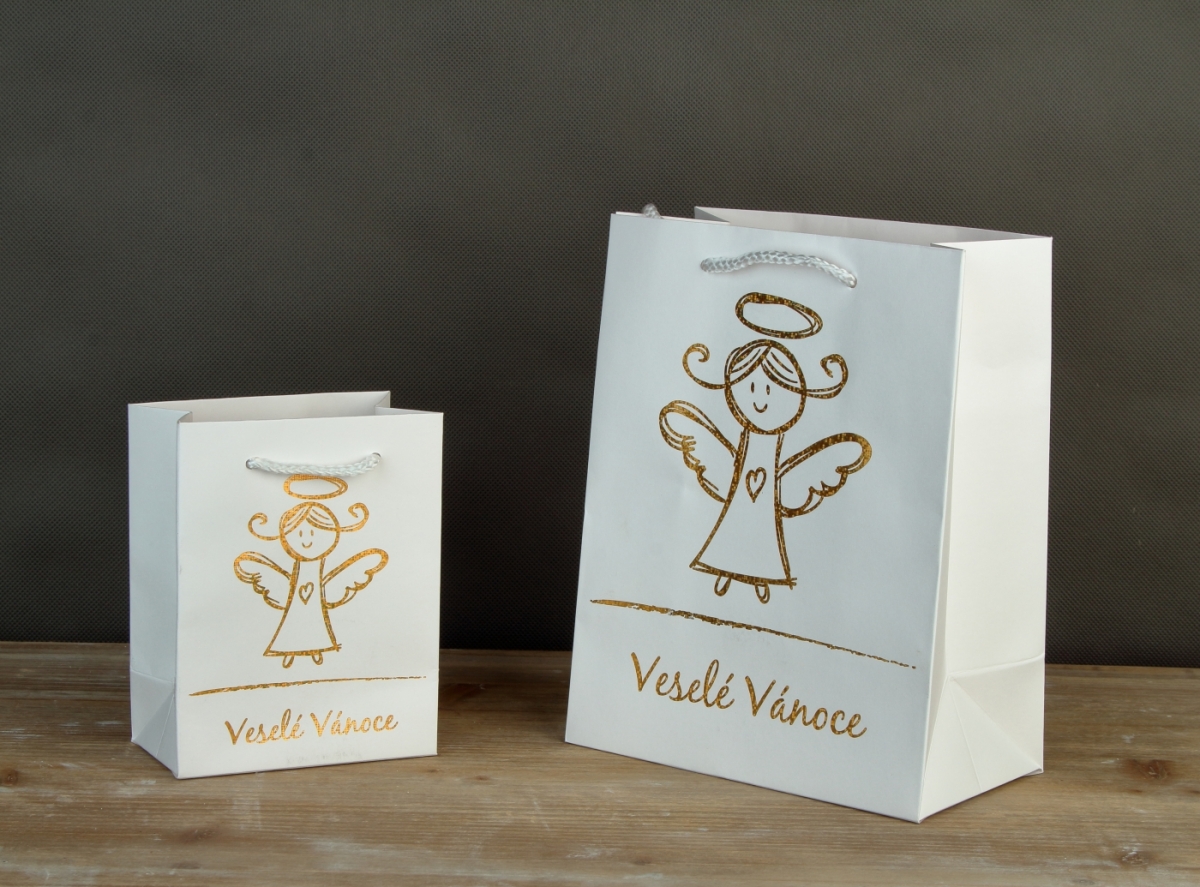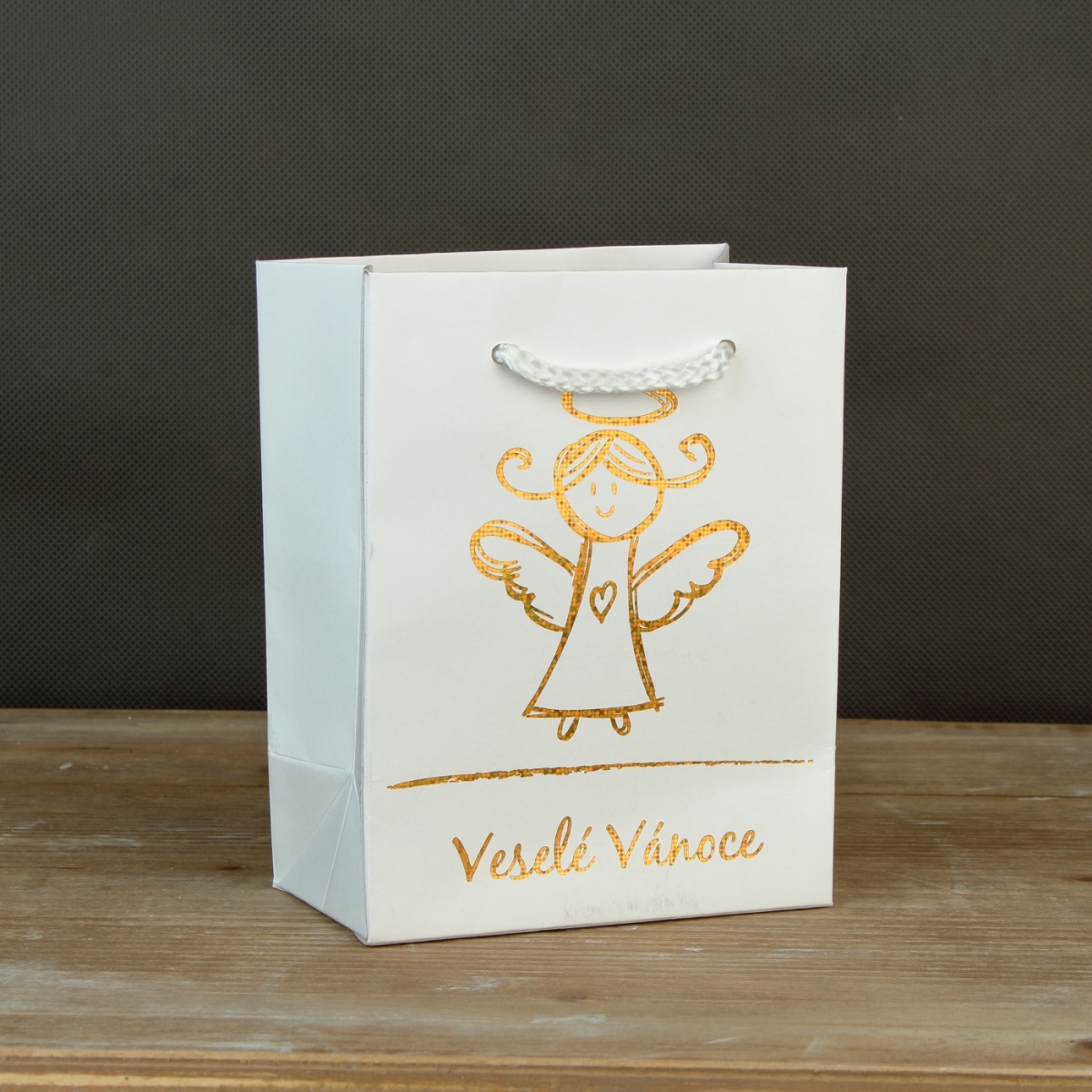 Vánoční dárková taška s andělem a nápisem Veselé Vánoce - malá