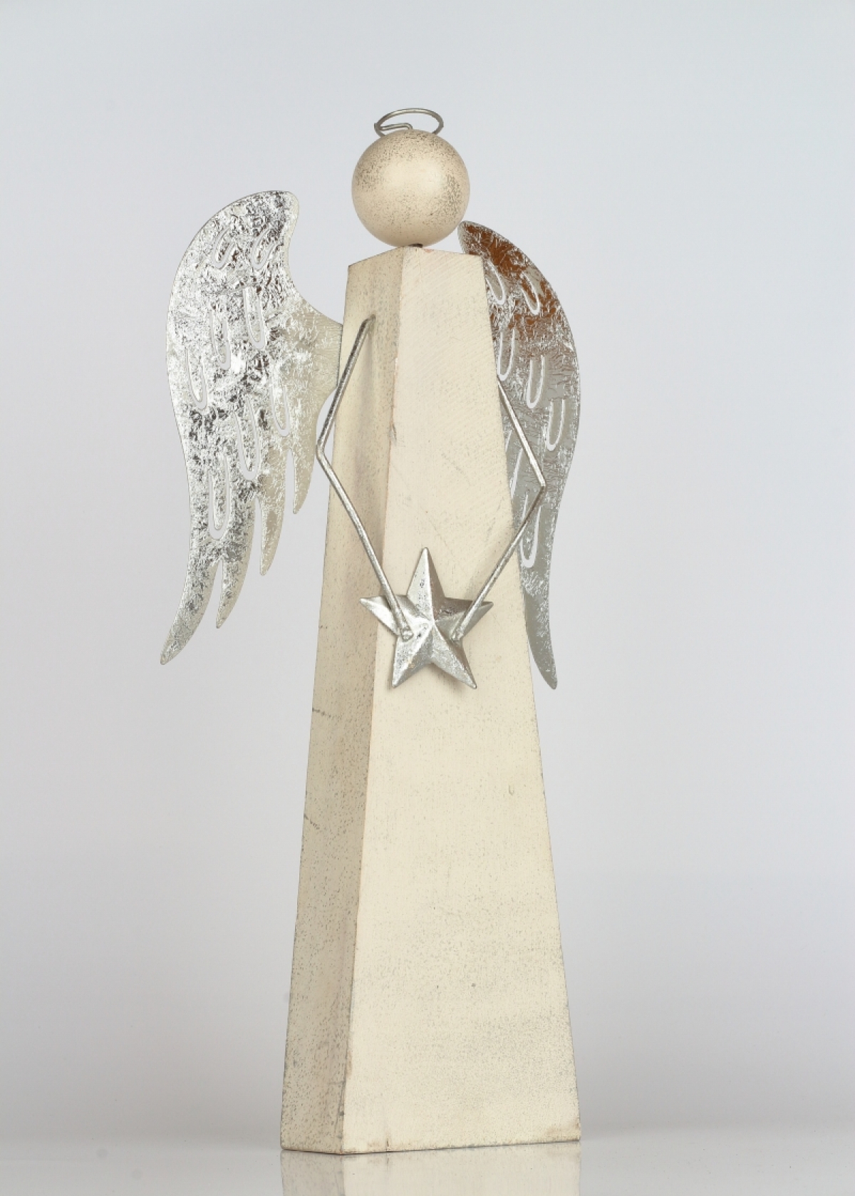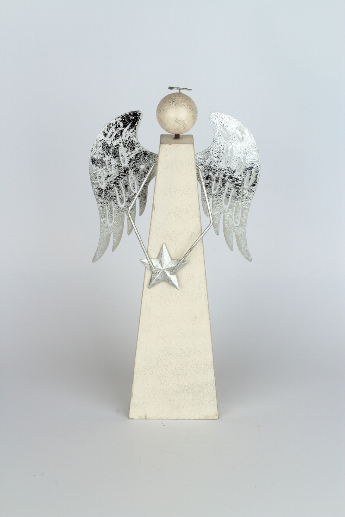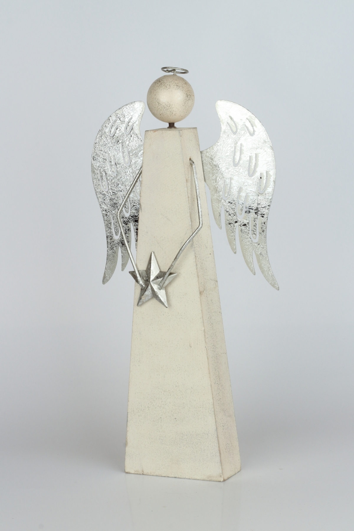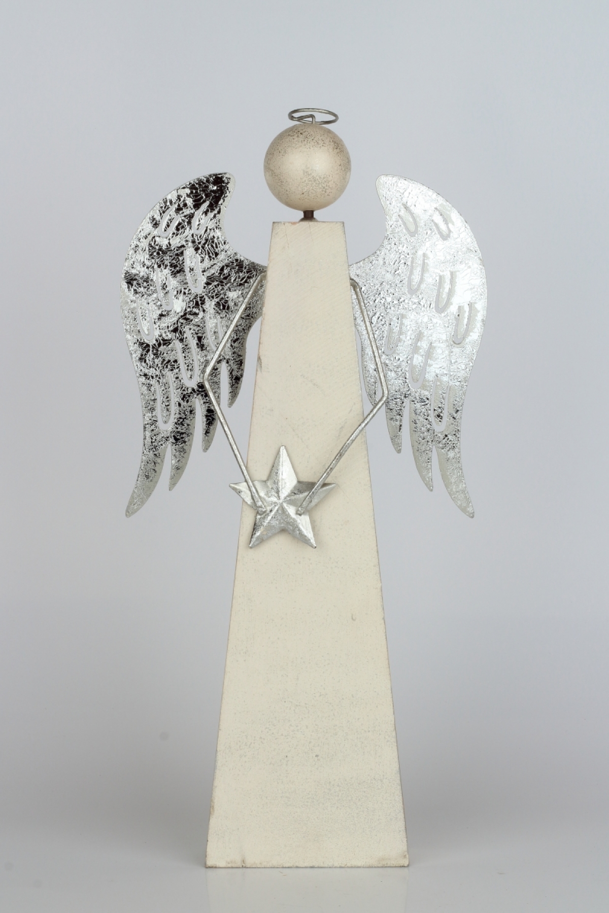 Vánoční dekorace anděl se stříbrnými křídly 10x10x40cm jako symbol čistoty, něžnosti a elegance. Anděl nad Vámi bude držet ochranou ruku a bude strážit Váš domov.