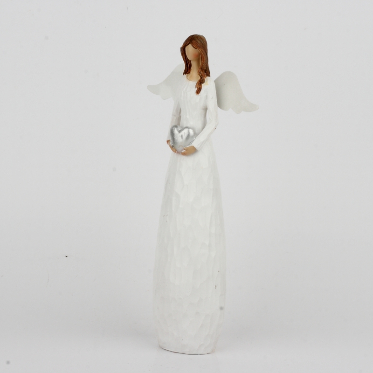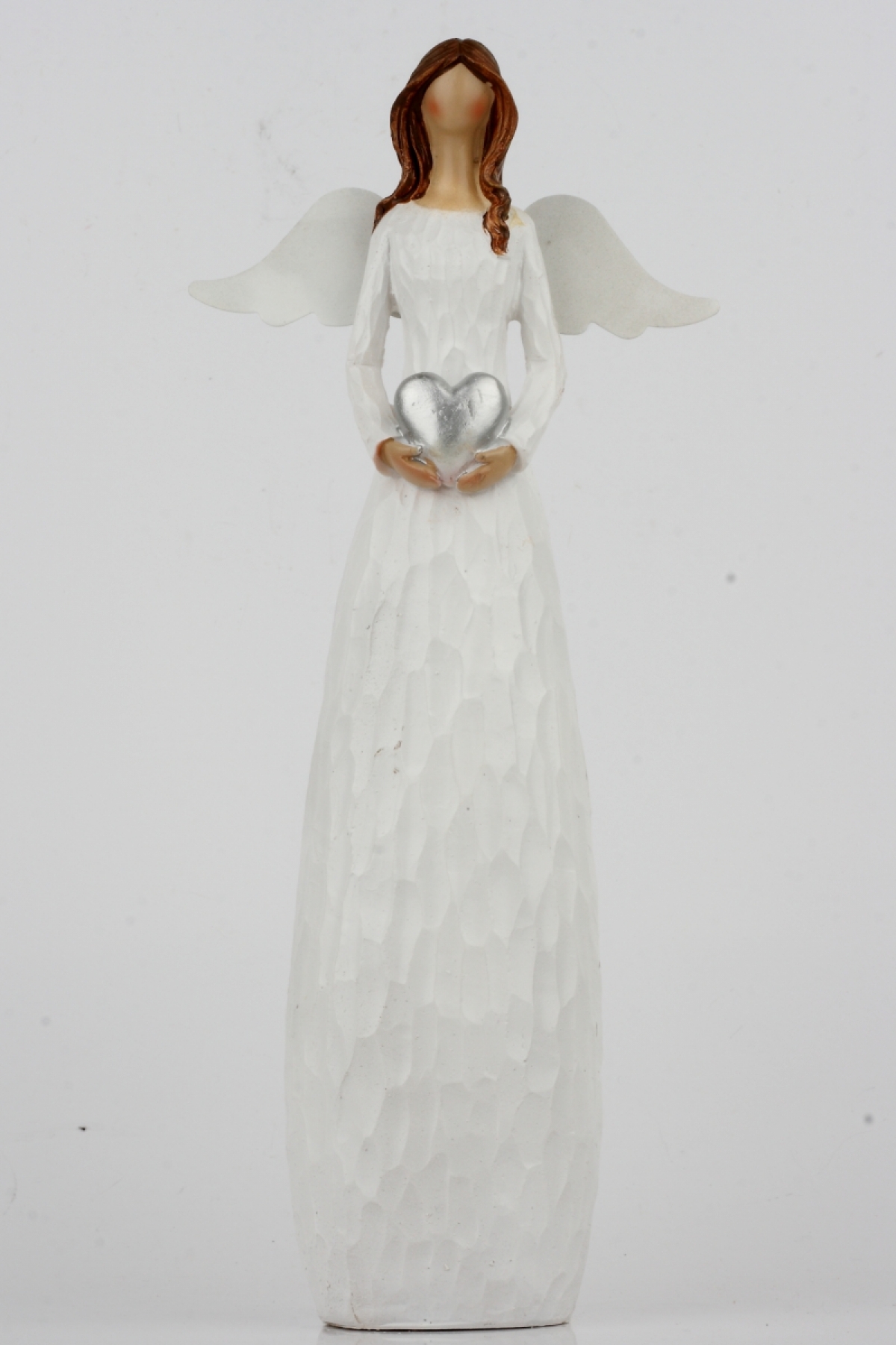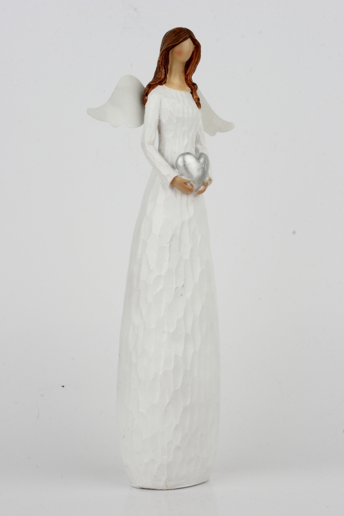 Vánoční dekorace anděl velký se stříbrným srdcem 30cm