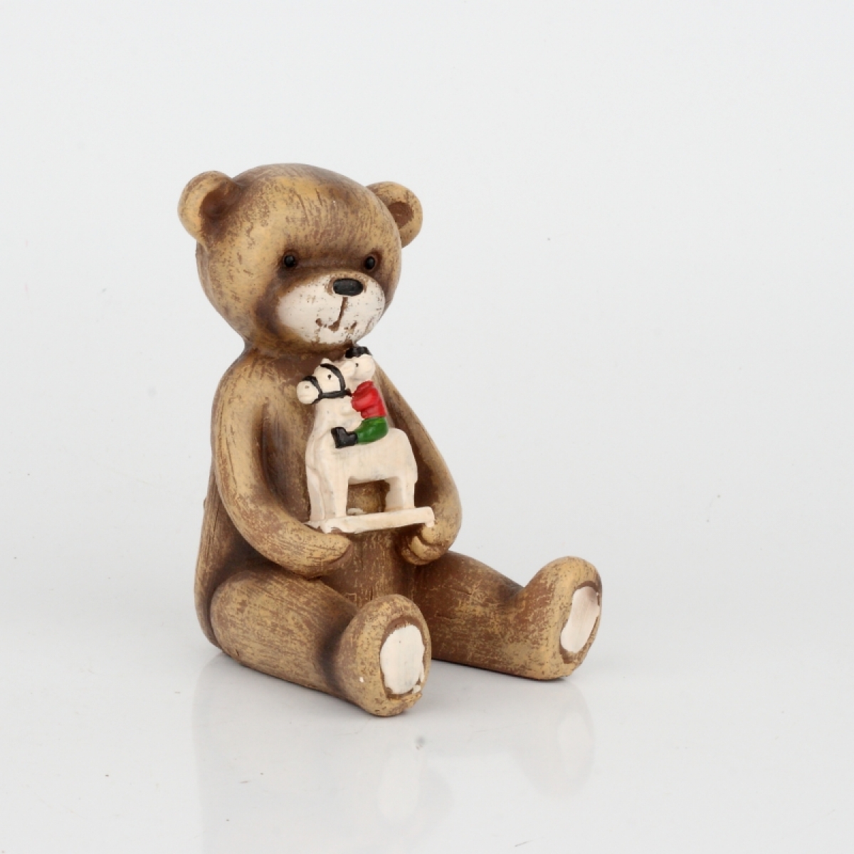Vánoční dekorace soška medvídka s koníkem 11cm.