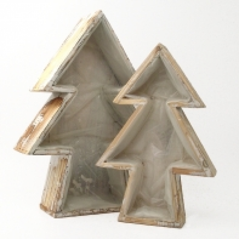 Vánoční stromeček sada dvou tácků pro aranžování, nebo pro zasazení vánoční hvězdy. Stačí například nasypat hlínu, zapíchat pár větviček a dozdobit rolničkami či malými baňkami.