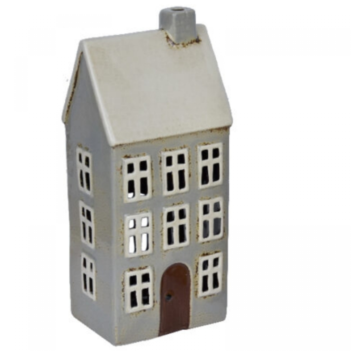 Vánoční domeček z keramiky na čajovou svíčku v šedé barvě