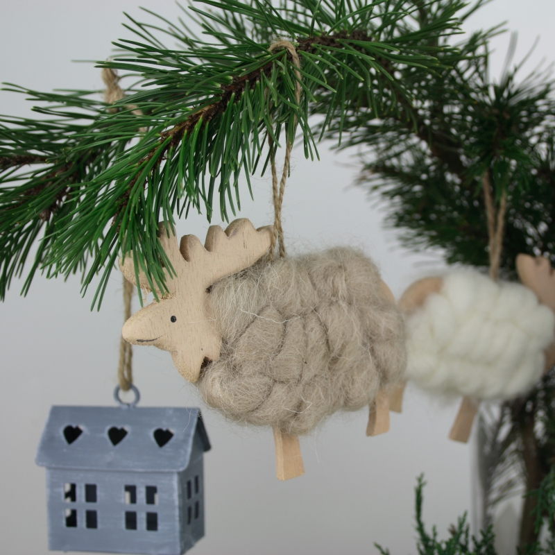 Tento sob je vyrobený ze dřeva, má krásný hřejivý kožíšek světle hnědé barvy. Má šňůrku na zavěšení např. na stromeček nebo na větvičky ve váze.