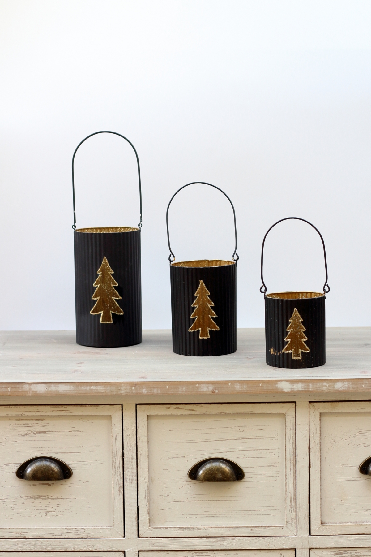 Vánoční svícen se stromečkem v barevné kombinací černá/zlatá