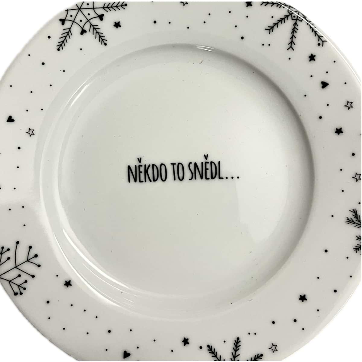 Vánoční tácek Někdo to snědl… (Ø 20 cm) dodá vašemu svátečnímu stolu hravý nádech. Vtipný nápis zaručeně pobaví a rozzáří každé vánoční posezení.
