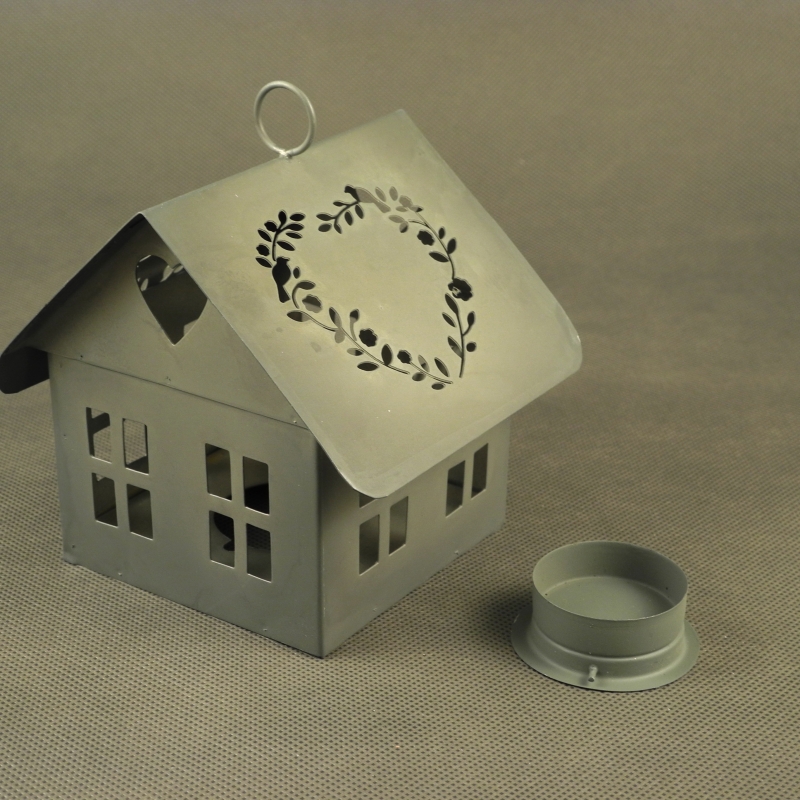 Vánoční výzdoba kovový domeček na čajovou svíčku.