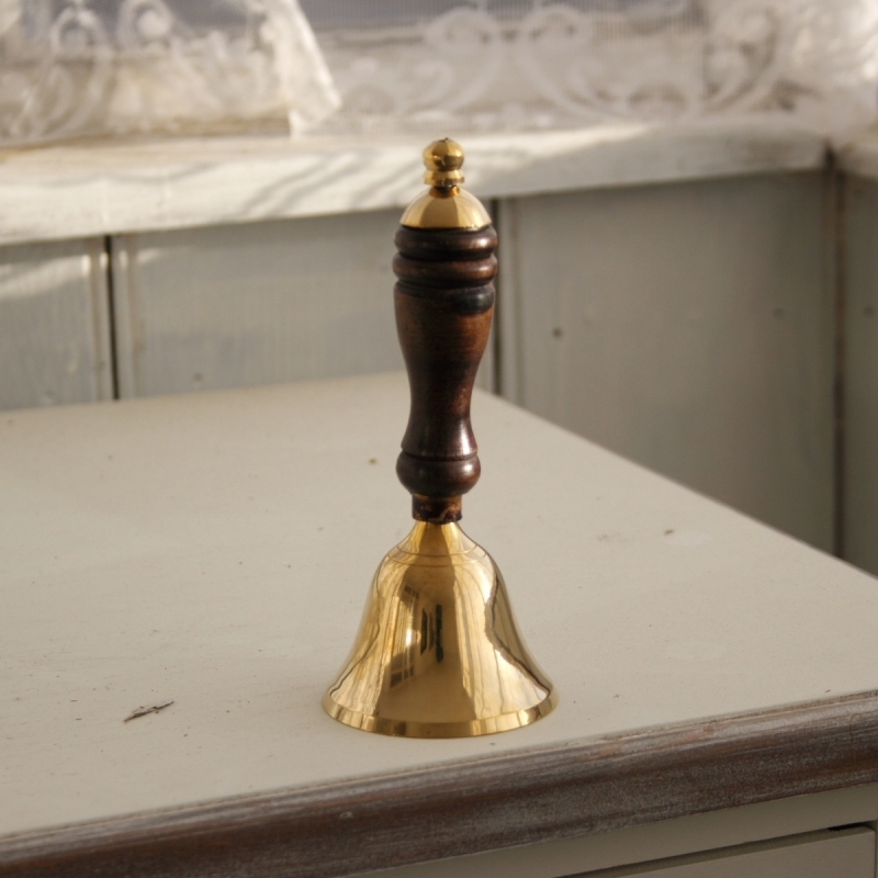 Rozměry: průměr mosazného zvonečku 6cm, výška 5cm. Celková výška 14,5cm.