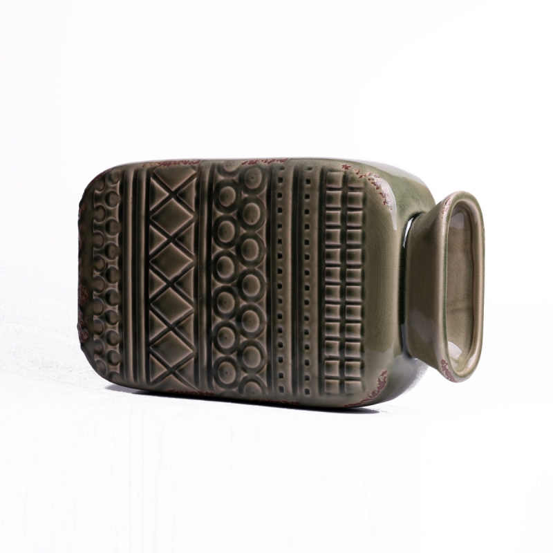 Váza keramika aztécké vzory zelená 34x18cm v nádherné zemité barvě bude krásně ladit s dalšími neutrálními barvami - krémová, hnědá, šedá.