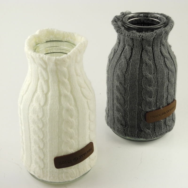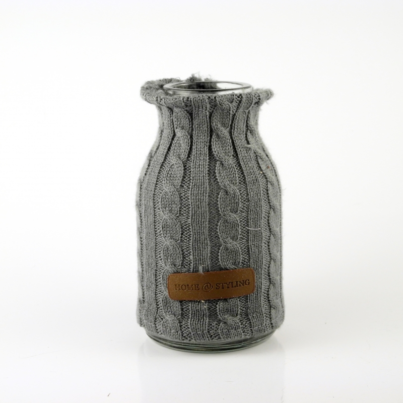 Skleněná váza s vlněným návlekem a koženou ozdobou HOME STYLING.