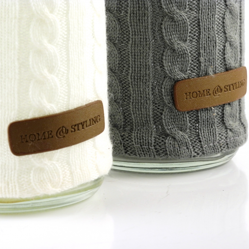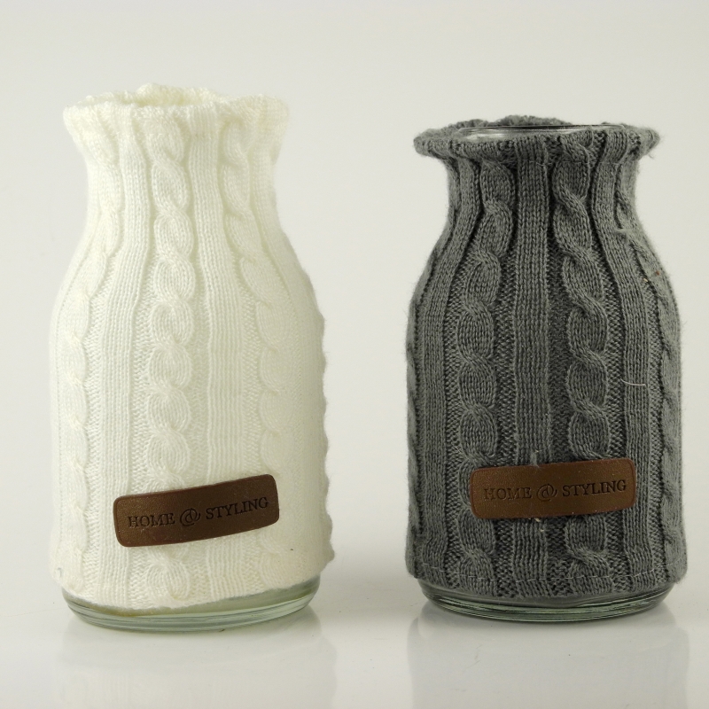 Skleněná váza s vlněným návlekem a koženou ozdobou HOME STYLING.