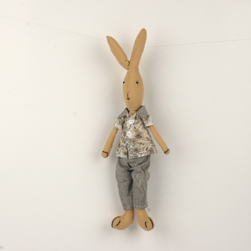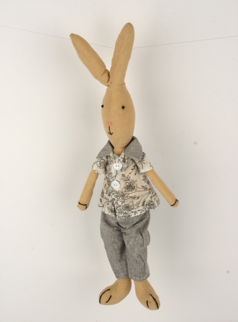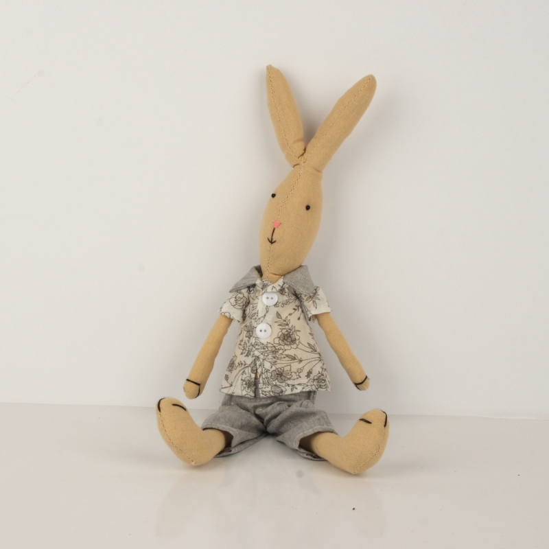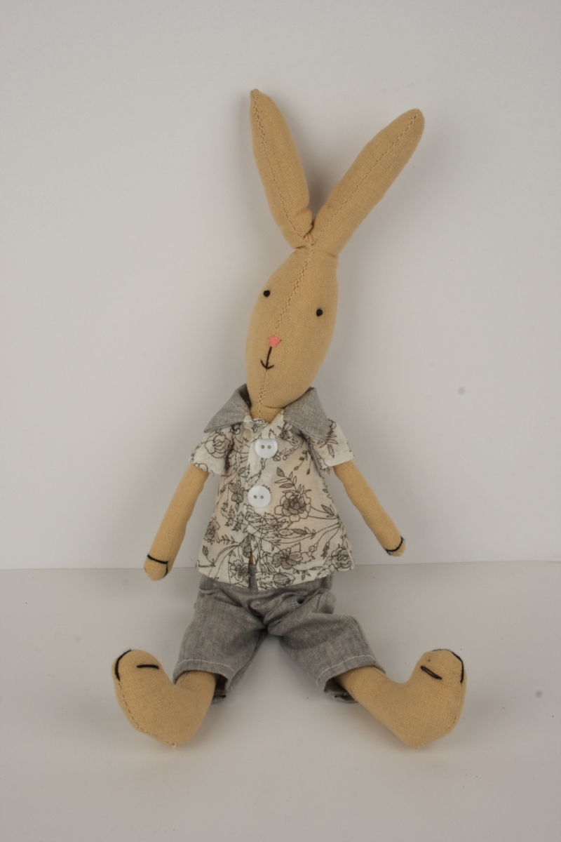 Zajíc patří mezi tradiční motivy Velikonoc a jako dekorace má mnoho podob. Tento látkový zajíček bude překrásnou ozdobou polic nebo stolu.