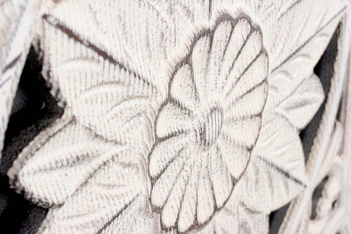 Dekorativní vyřezávaný panel je vyroben z polyresinu, má výraznou patinu a na zadní straně dva kovové háčky pro bezpečné zavěšení.