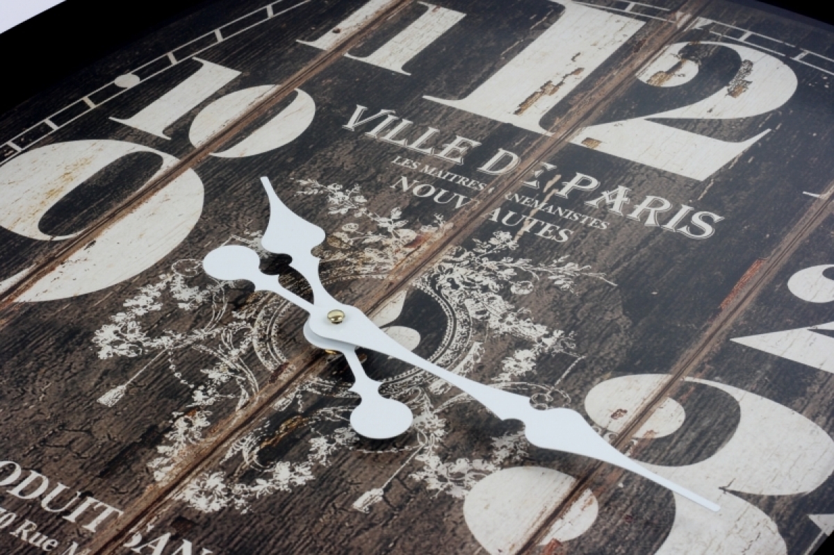 Velké nástěnné hodiny byly vyřazeny z důvodu nefunkčního strojku hodin. Opravitelné i svépomocí, nebo u hodináře v hodnotě max. do 300Kč.
