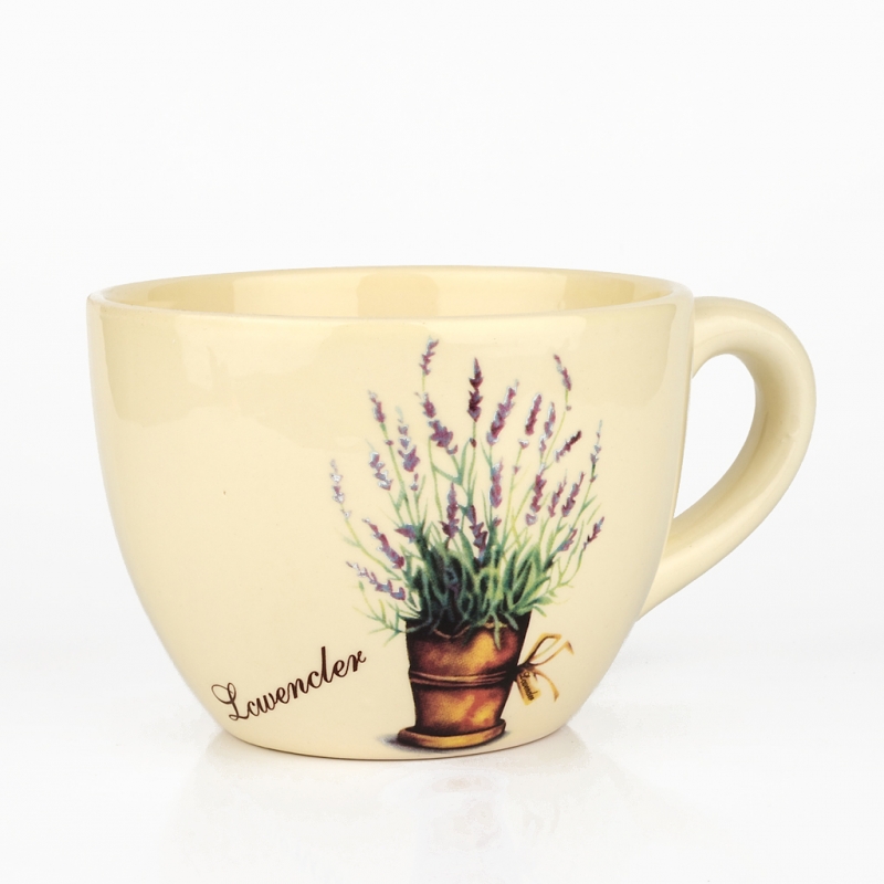Velký šálek snídaňový levandule Vám zpříjemní ranní vstávání s šálkem horké kávy nebo čaje. Velký šálek snídaňový levandule půllitrák je také vhodným dárkem pro Vaše přátele. Šálek 500ml.