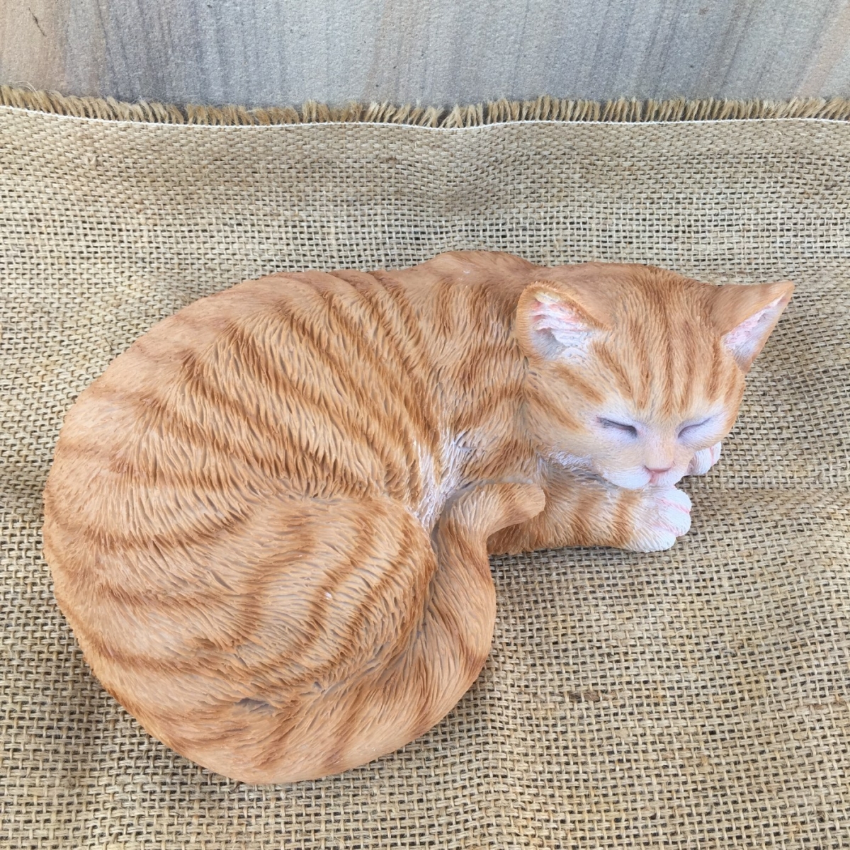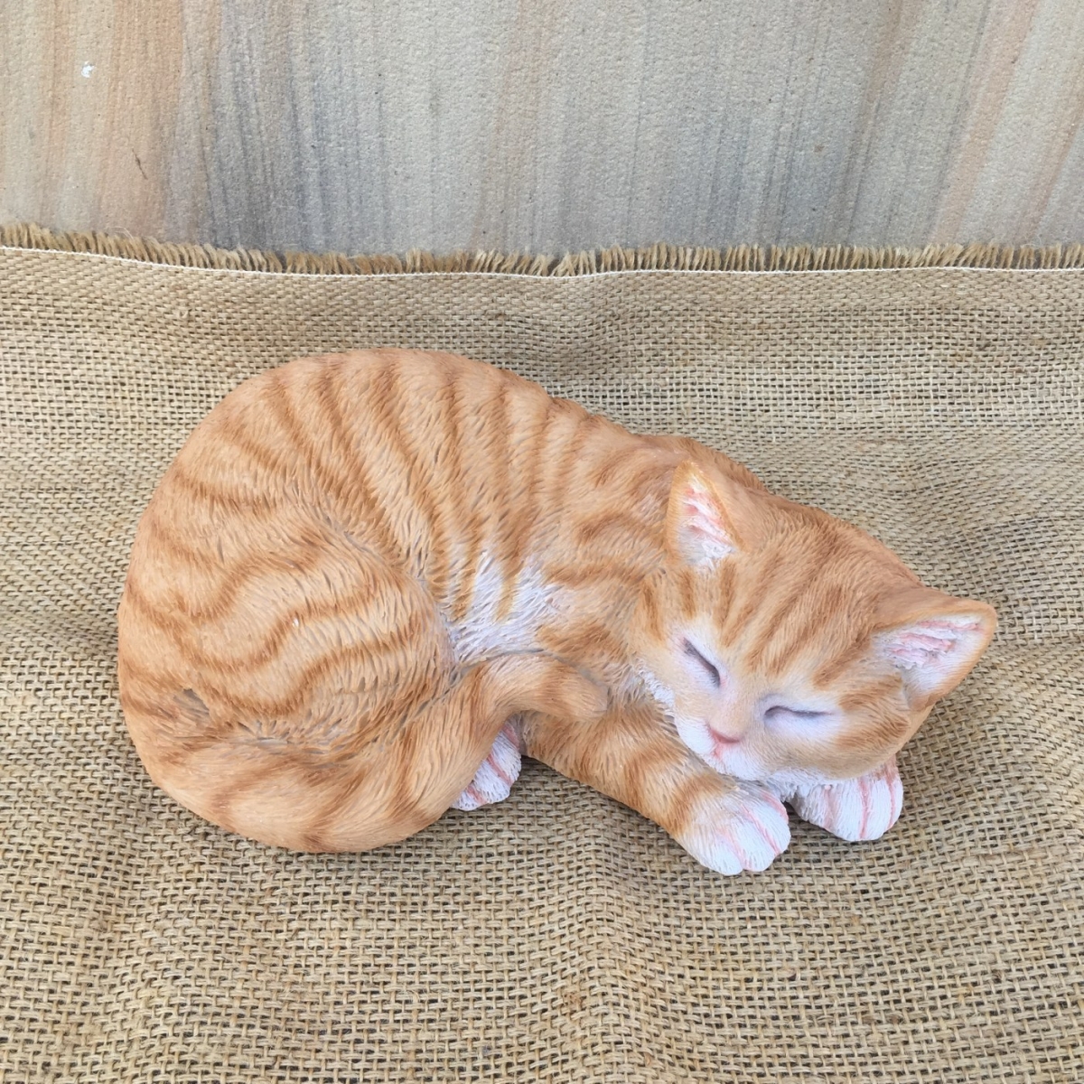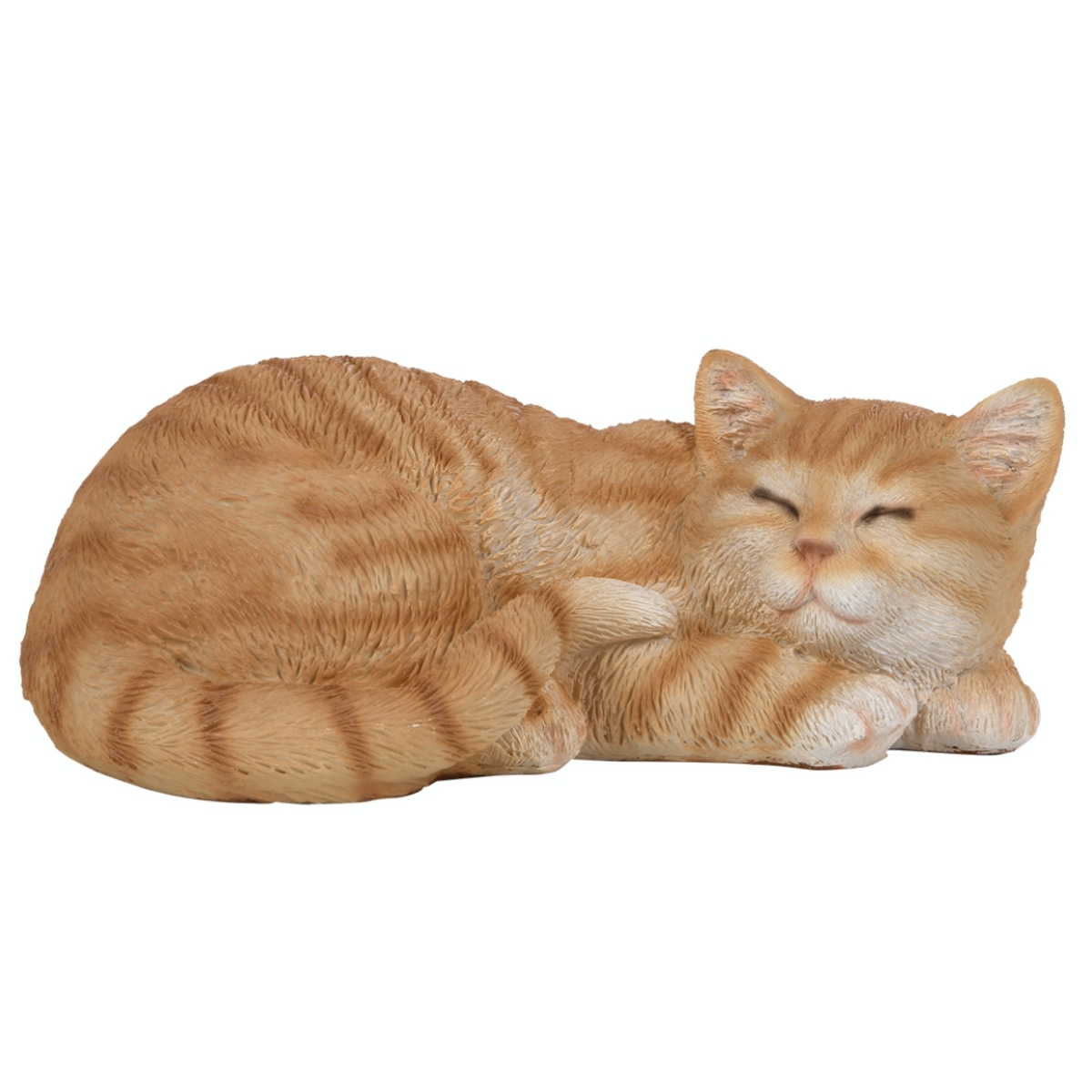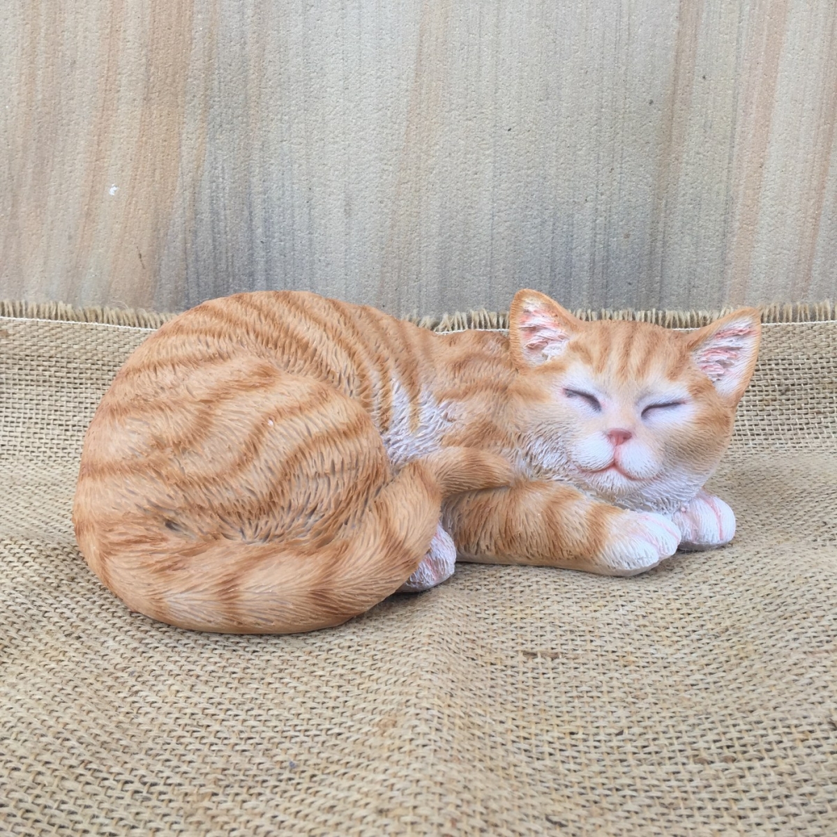 Venkovní socha spící kotě (pískový odstín) vyrobená z polyresinu je téměř k nerozeznání od skutečného kočičího mazlíčka.