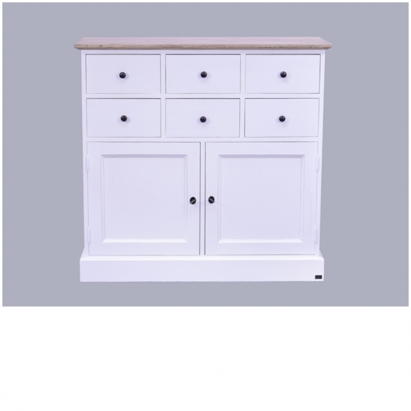 Venkovská komoda 6 šuplíků + dvířka 109x105x40cm