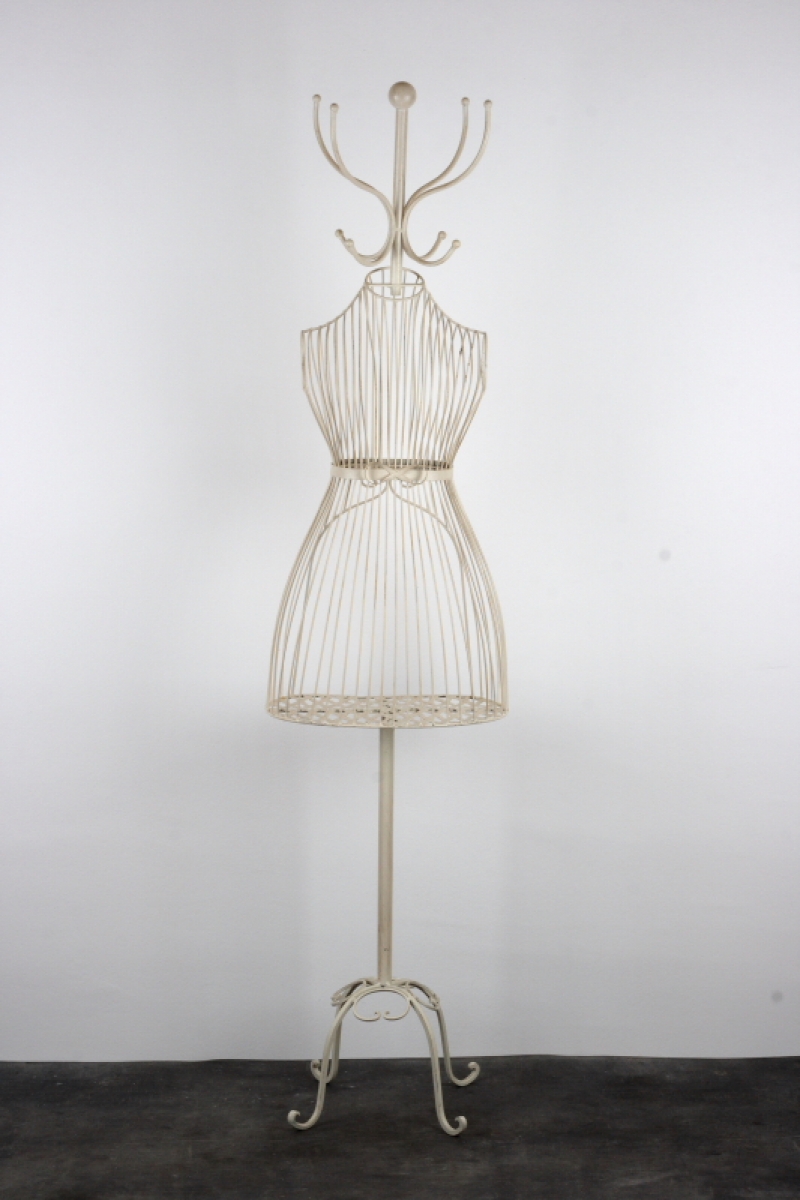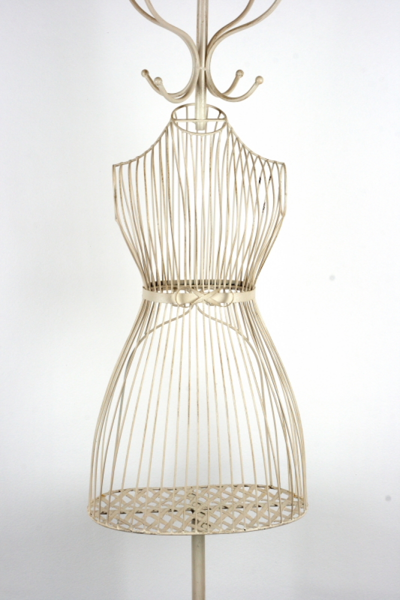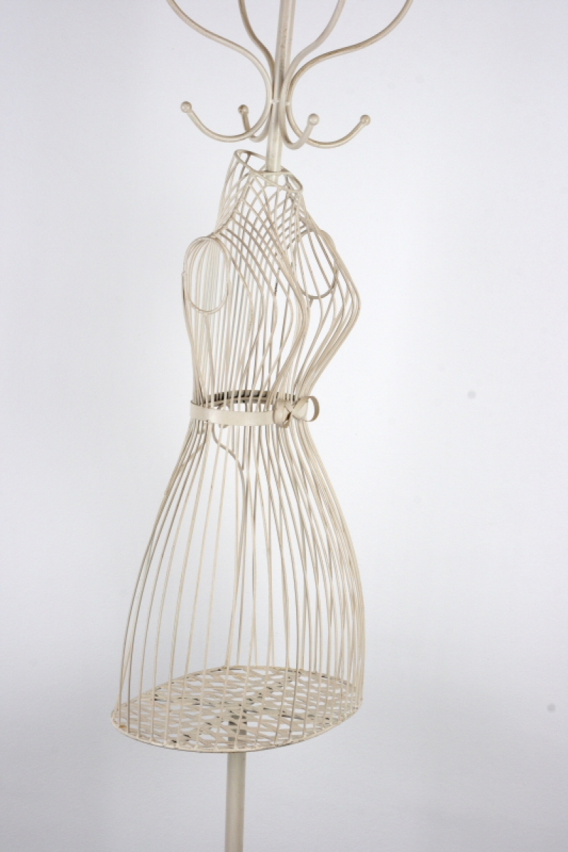 Tento stojací věšák má místo obyčejné středové tyče tělo krejčovské panny, která z něj dělá originální kousek do vaší předsíně.